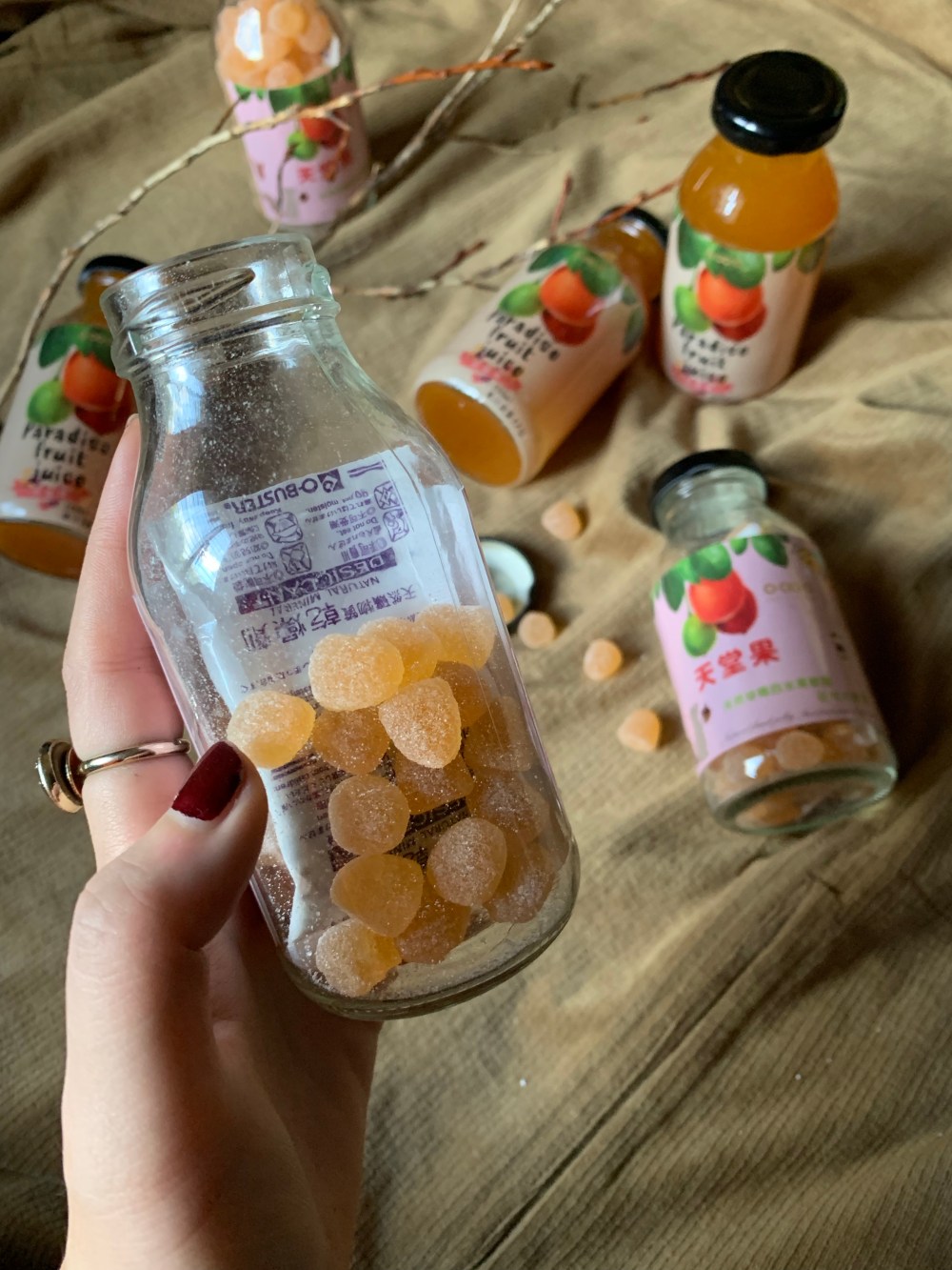 糖果畢竟還是糖果,熱量就不比果汁來得低,還是不要像我一樣肆無忌憚地吃,一天吃個兩三顆就好,這樣還可以多享受幾天呀!