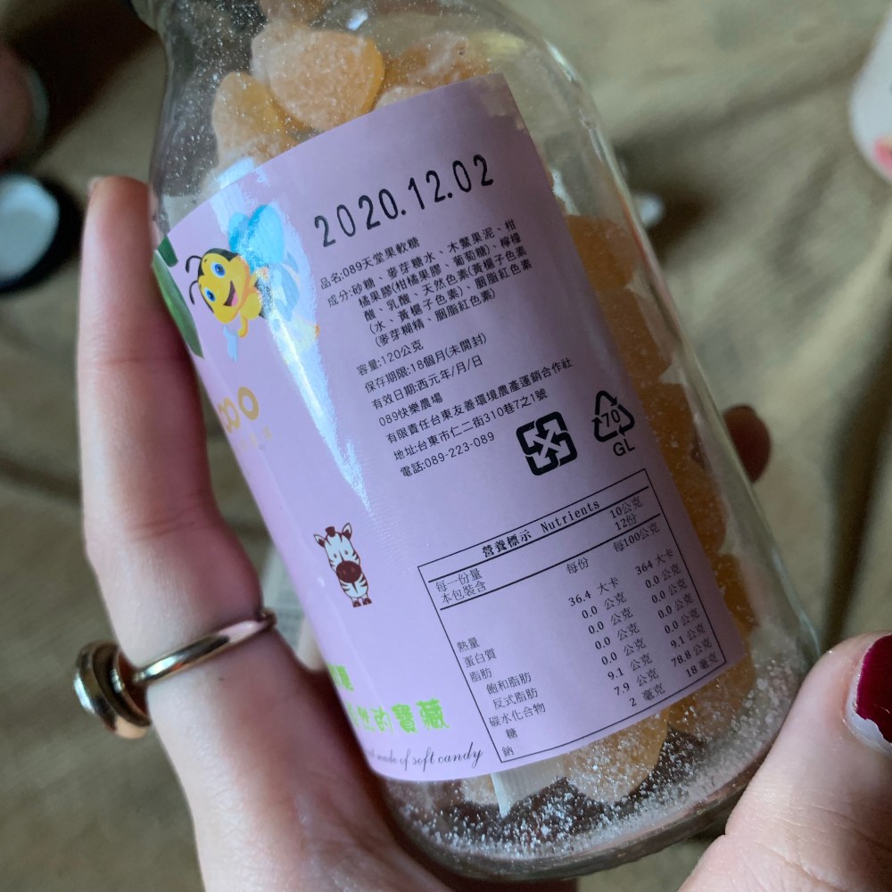 從糖果外型上來看,跟坊間的很多軟糖,不管形狀、顏色都長的很像,外面包裹著薄薄的糖粉,含在嘴裡邊可以嚐到天堂果的香味,咬開糖果內裡不過分黏牙,卻也不會讓人吃起來很空虛沒有嚼感的軟糖(就不說我在外面踩了多少軟糖的雷了🙃)