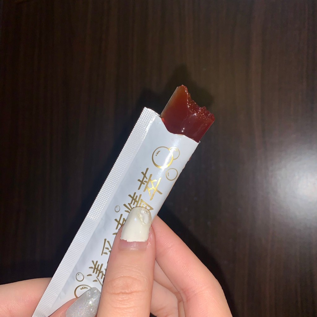 本來錄了一個想表示,漾采凍精萃非常古溜,很好入口,所以就像吸珍珠一樣,想把整條凍條吸出來吃掉,殊不知悲劇發生,你們自己看,我快笑死XD