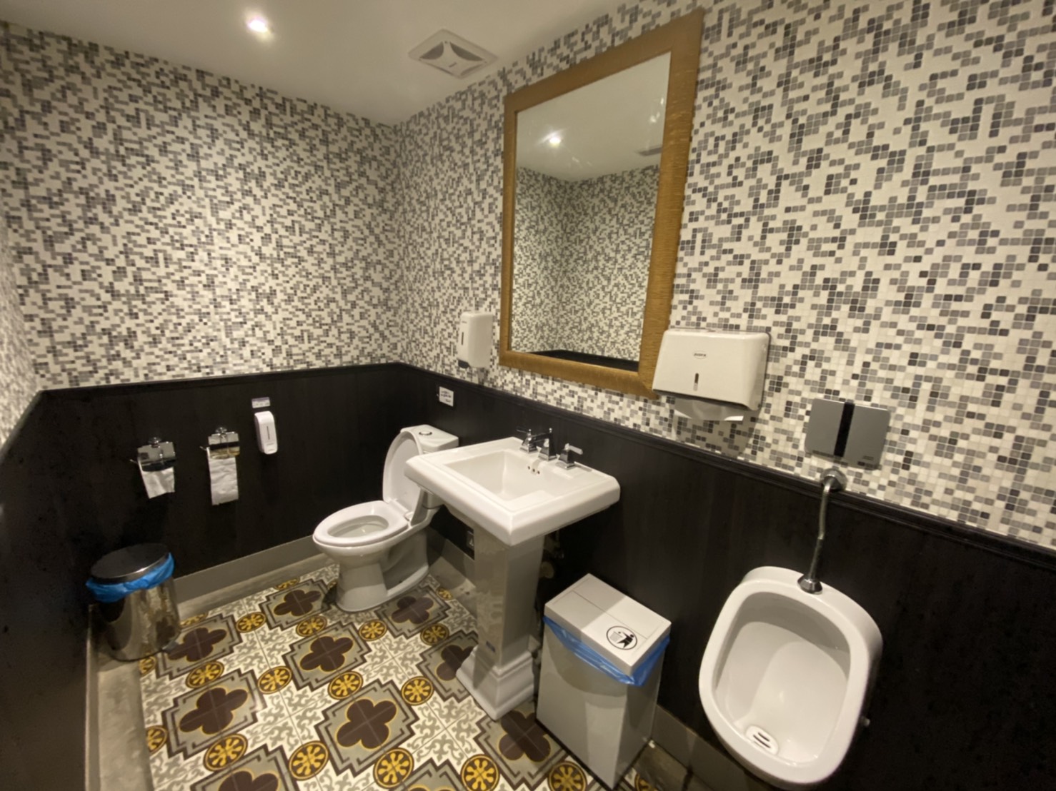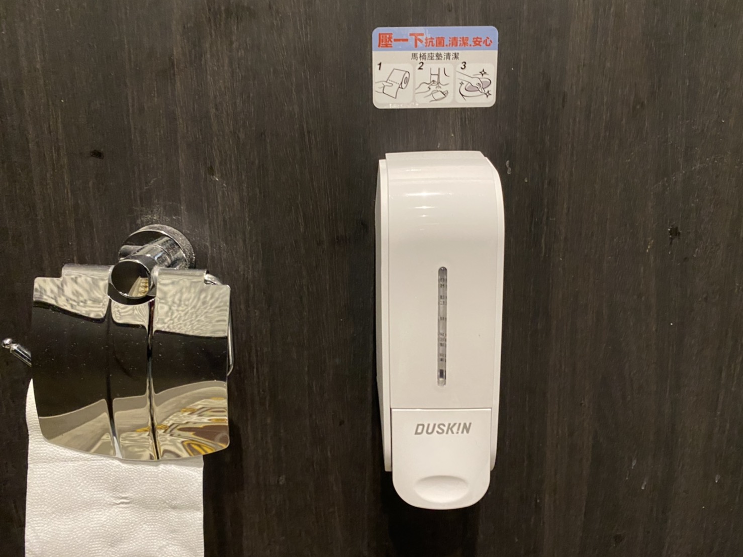 這算是我們的怪癖,看到漂亮的廁所會很興奮XD地磚超美~喜歡!廁所都有附馬通消毒酒精噴霧,第二間廁所還有提供寶寶換屁屁的小床,貼心~