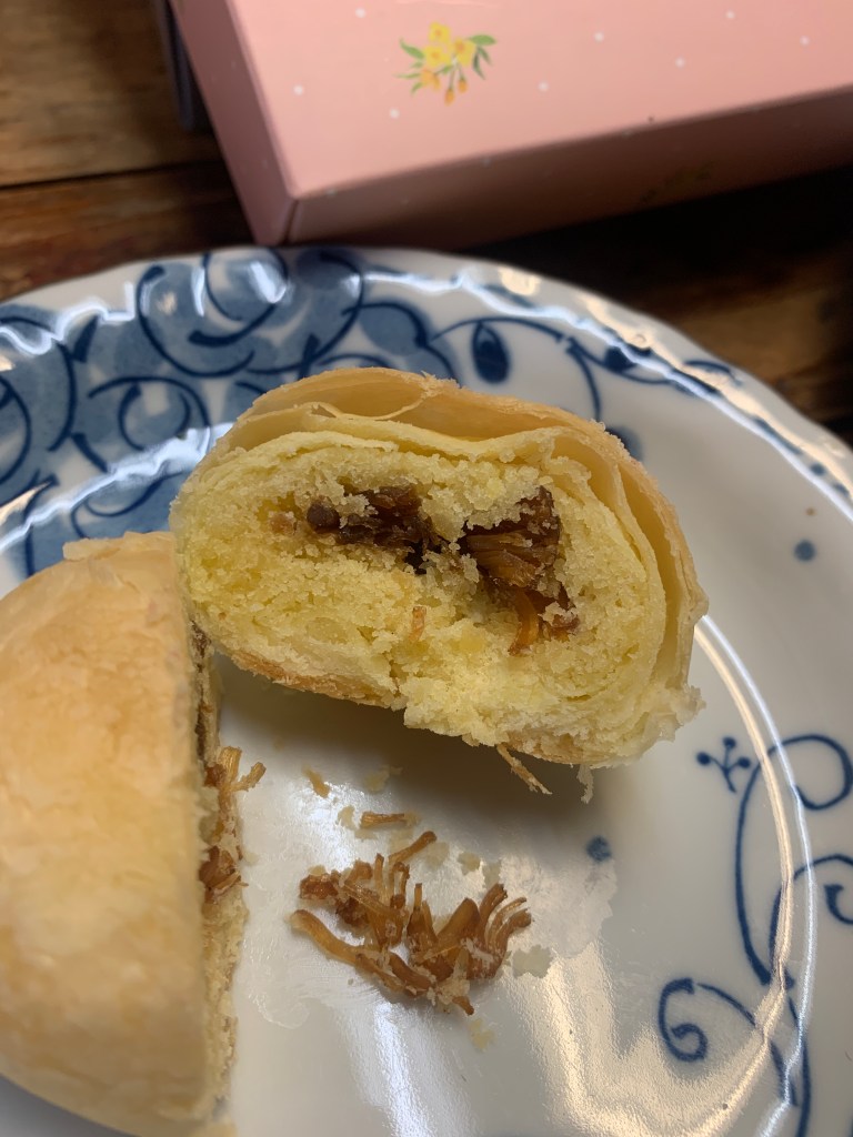 這次我很期待嬤嬤覓呀的珍珠餅,但也很怕收傷害,雖說以干貝還有杏鮑菇、木耳取代高熱量、高膽固醇的鹹蛋黃跟肉餡這件事很新奇,但我還是擔心會不習慣甜甜鹹鹹的內餡,抱著嘗試看看的心情吃吃看,結果發現完全是新的餅製品口味!