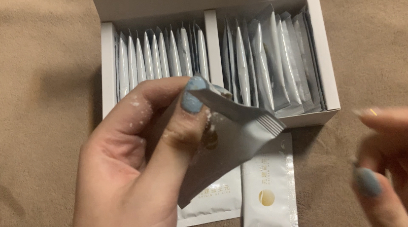 但因為粉末非常細緻,所以倒進嘴巴裡的時候,不要吸氣,不然可能容易嗆到,碰到口水之後會變得比較黏糊,容易黏在上顎XD這時候就可以配一些水好吞嚥~
