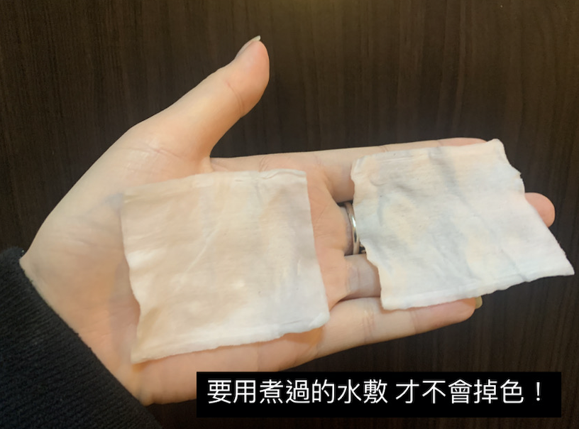 - 第三天到第7天用喝的水+化妝棉濕敷5分鐘(早,中,晚),會癢記得不要去摳以免顏色脫落