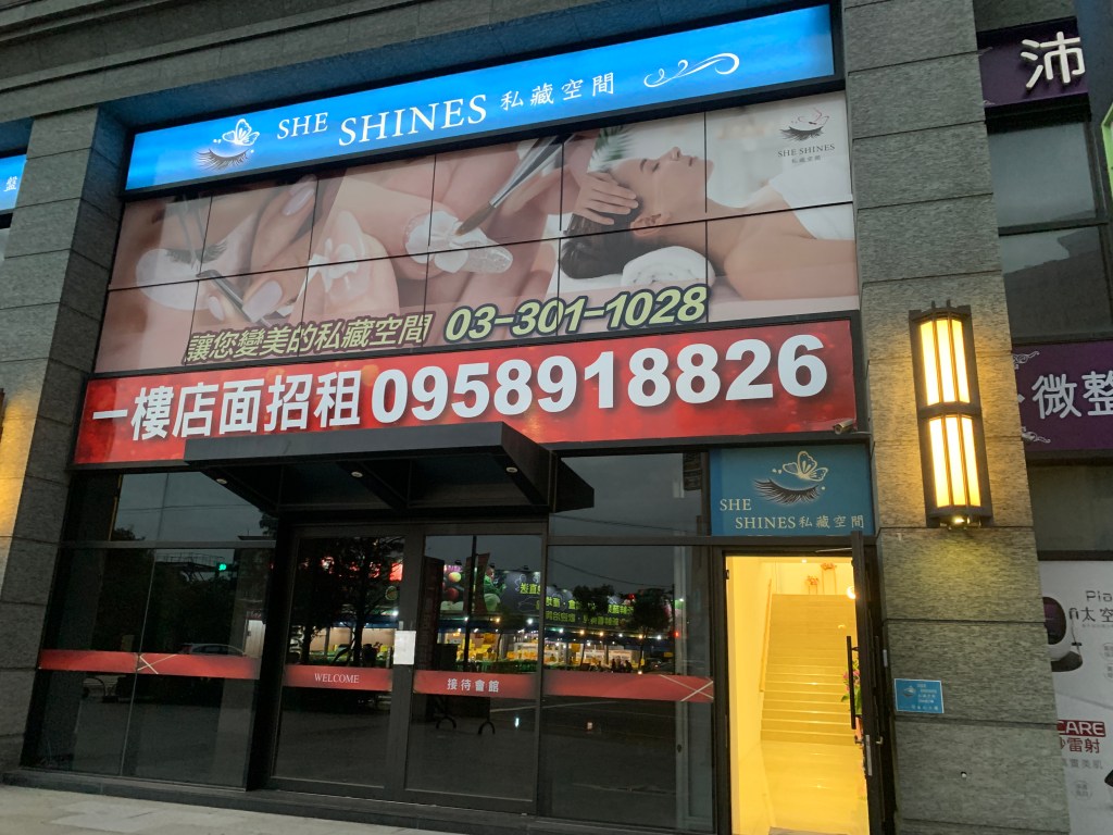 she shines私藏空間是一間在桃園中壢的霧眉美學館,佔地140坪!所有服務項目,除了霧眉,還有美睫、手足美甲跟岩盤浴,可說是應有盡有的一間美學中心。
