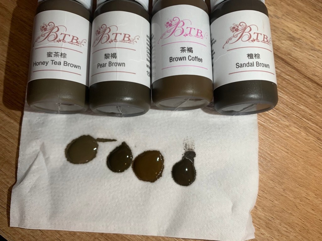 因為我對顏色不是非常敏感的人XD所以我挑好久,老師人超好拿出衛生紙直接擠一點出來給我看,最後我是挑選茶褐色~