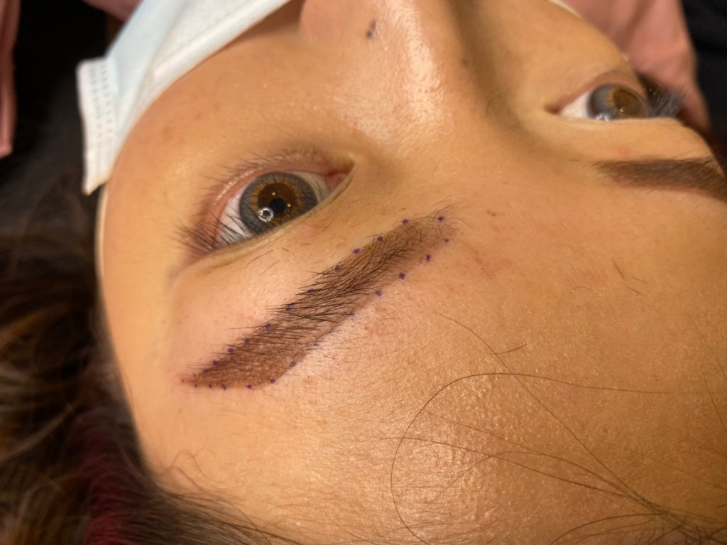 開始上色囉~!其實敷過30分鐘的舒緩膏後,後續的施作順利很多,我是很怕痛的人,本來很緊張以為會是難以忍受的疼痛感,其實就像是平常我拔眉毛雜毛的感覺,只是霧眉的過程像是一直在拔而已XDD哈哈其實真的不會太痛