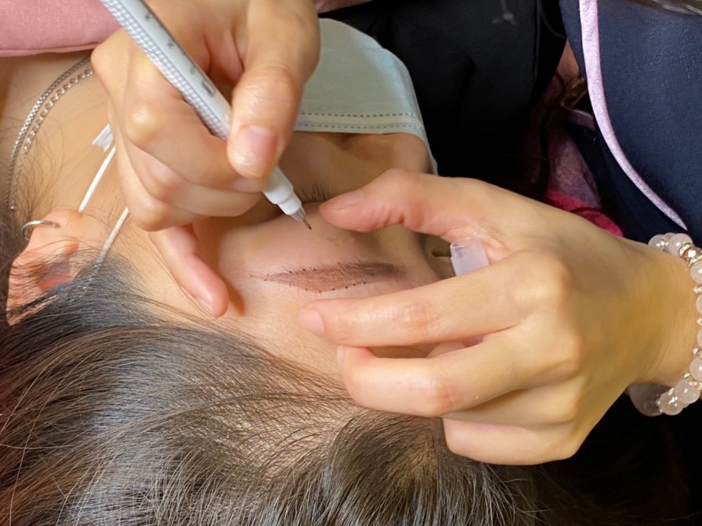 一開始會先溝通想要的眉型,老師會先用眉筆畫出大概的形狀,在溝通微調。
