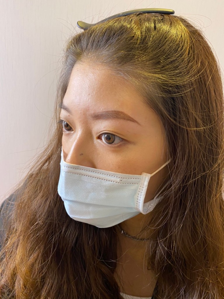 因為老師說我有一點點高低眉,兩邊眉峰不一樣高,所以來回幫我微調好多次,我又喜歡有一點角度的眉毛,不想要平眉眉行,所以跟老師溝通了一陣子,老師十分有耐心也很專業的幫我調整