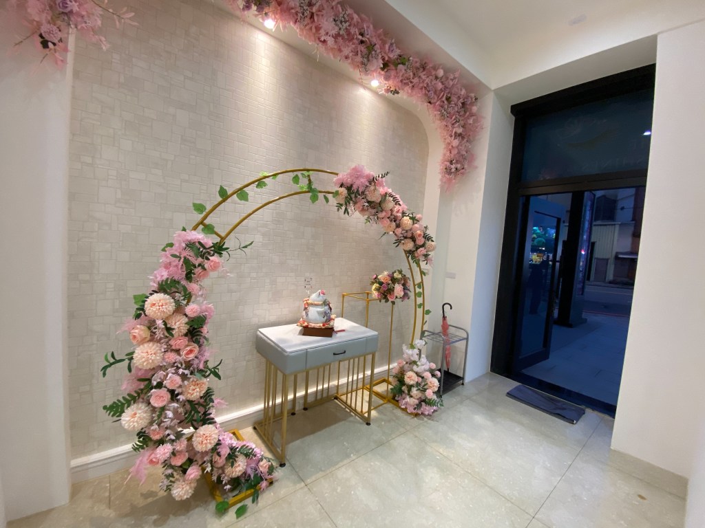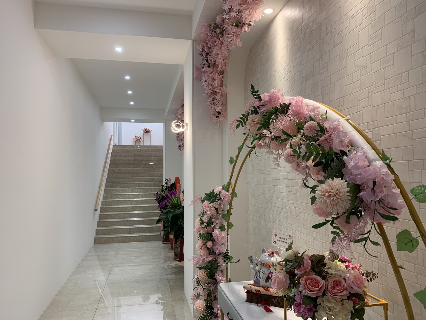 一樓進去有很漂亮的花拱門擺設,整體的光線跟白粉色的色調,很有氣質。