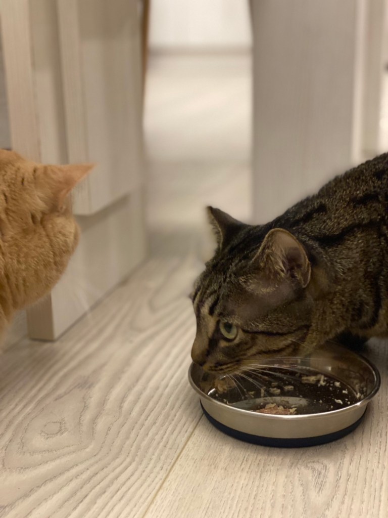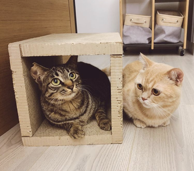 先來介紹主角們登場:拉花是左邊的虎斑,是朋友領養回家的;右邊是奶球,是一隻自帶偶像光環(XD)的曼赤肯