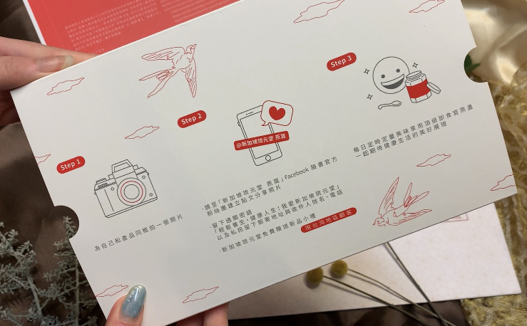 禮盒一打開上方有左圖1的封蓋,上面是目前琉元堂在做的活動唷!與產品拍照上傳到琉元堂粉專,並留下特定通關密語,就可以得到免費小禮唷!