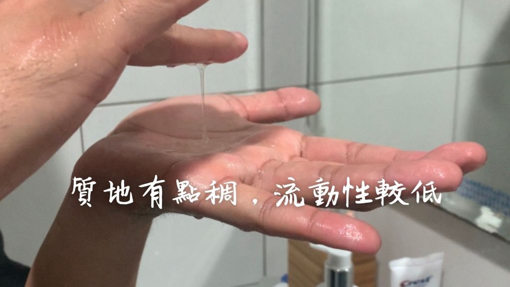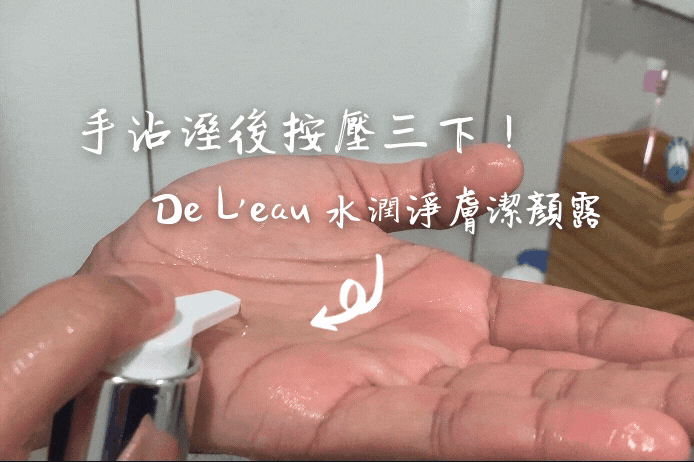 洗臉時記得先雙手沾濕,再擠出水潤淨膚潔顏露,洗整臉的話大概壓三下就夠了,液體呈現透明無色的,有淡淡的香味。