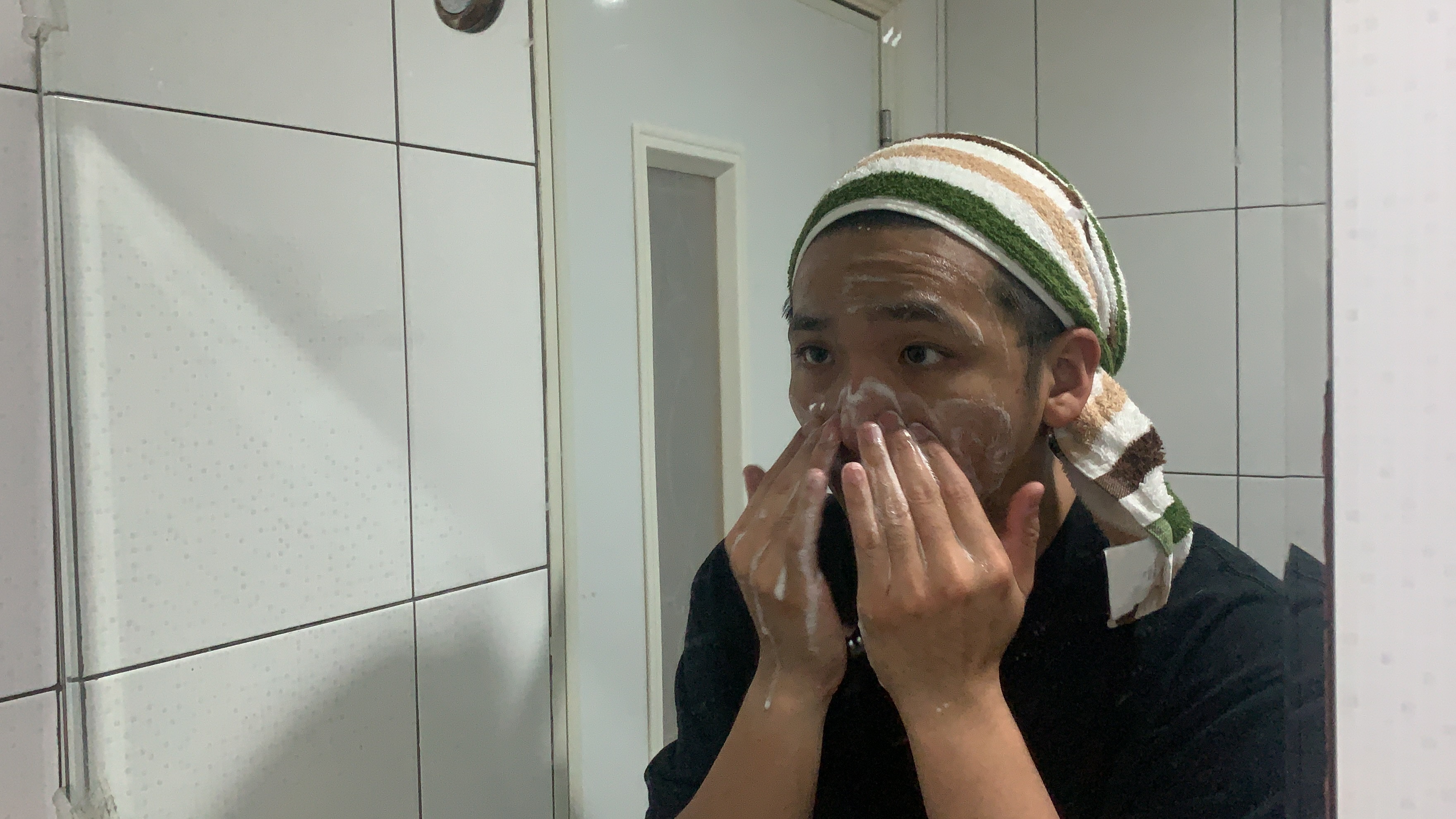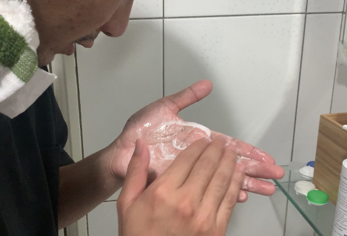 泡泡搓出來開始洗臉囉!重點在T字部位、痘痘處跟油脂分泌較旺盛的區域畫圈按摩,其餘較乾燥的地方及兩頰則輕輕帶過即可~搓洗完後用溫水洗淨即可唷!