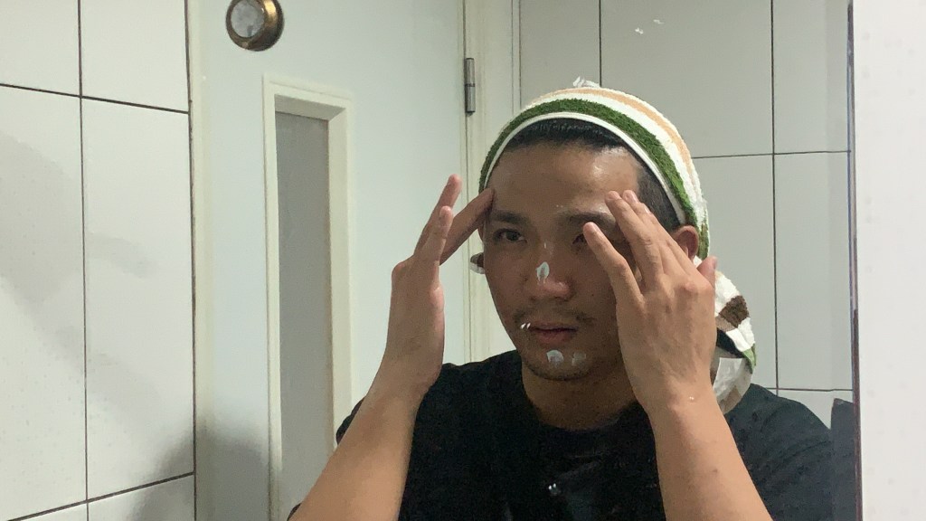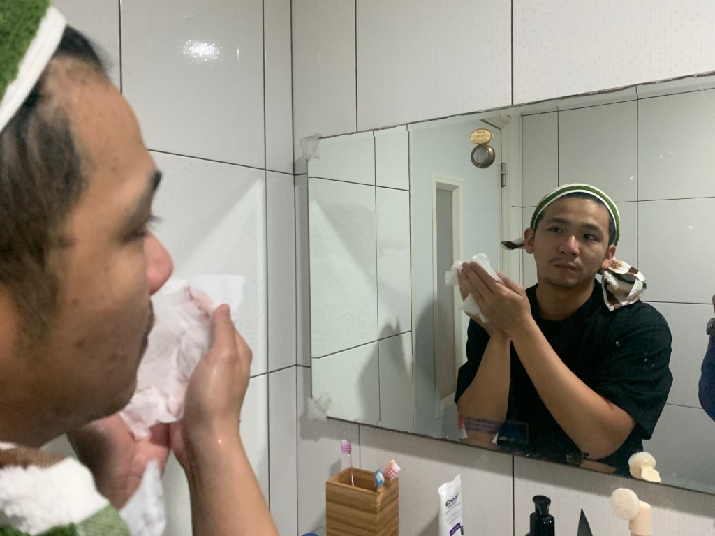 臉部洗乾淨後,用毛巾或是衛生紙輕按臉部擦拭,但記得臉必須留一點水份,或是也可以上一點化妝水再繼續下一個步驟