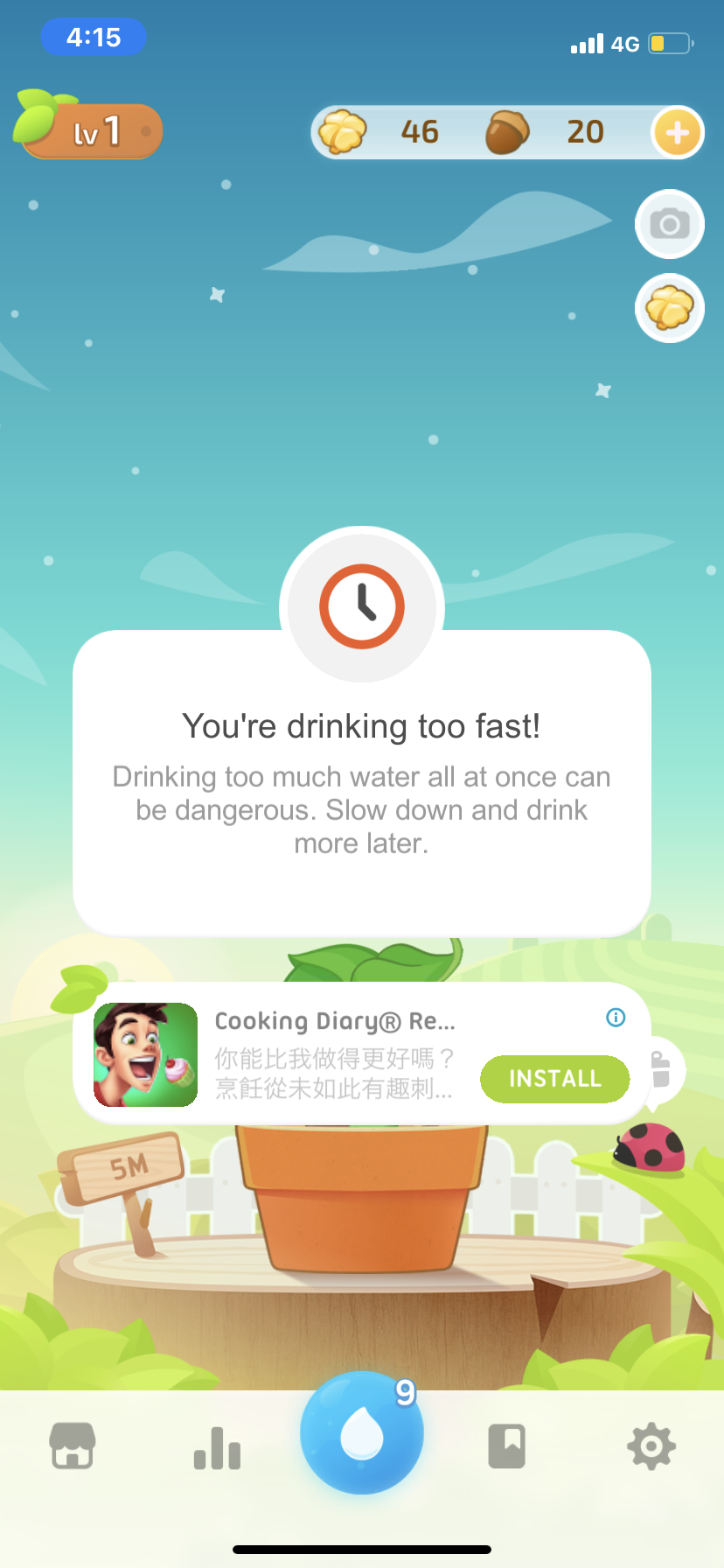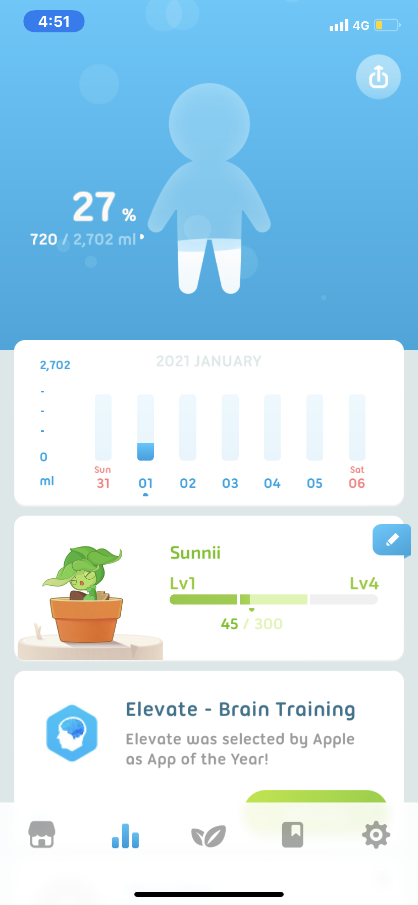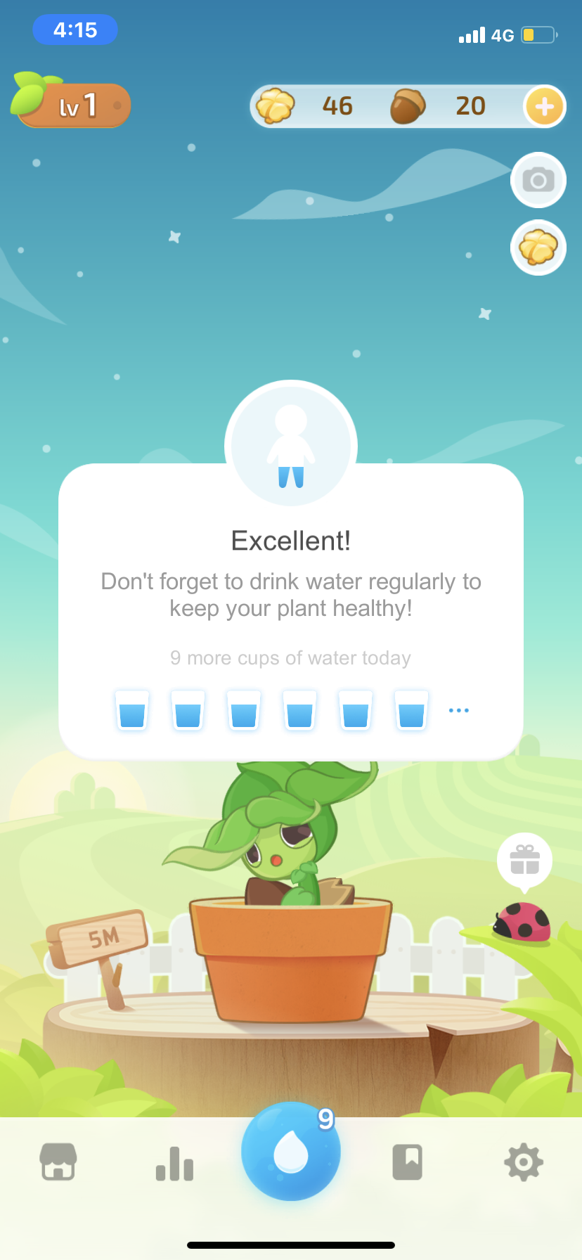 因為我也是不太熱衷喝水的人,一天平均喝三五杯水,距離建議攝取量還差很多,我前陣子發現一個App非常可愛,叫做plant nanny,他可以計算我們身體所需的水量,並且可以在自己的小樹種子上澆水,當然教的量就是自己喝的水量,小樹苗會慢慢長大,當然水喝的不夠多,小樹苗會呈現口渴的樣子,很逗趣!也可以設定喝水提醒,間隔一定時間會跳出提示訊息通知喝水,非常適合上班族,像我工作的辦公室,離茶水間有點距離,常常懶得去裝水喝或忘記忙到喝水,這個可愛的App,可以記錄喝水的狀況~