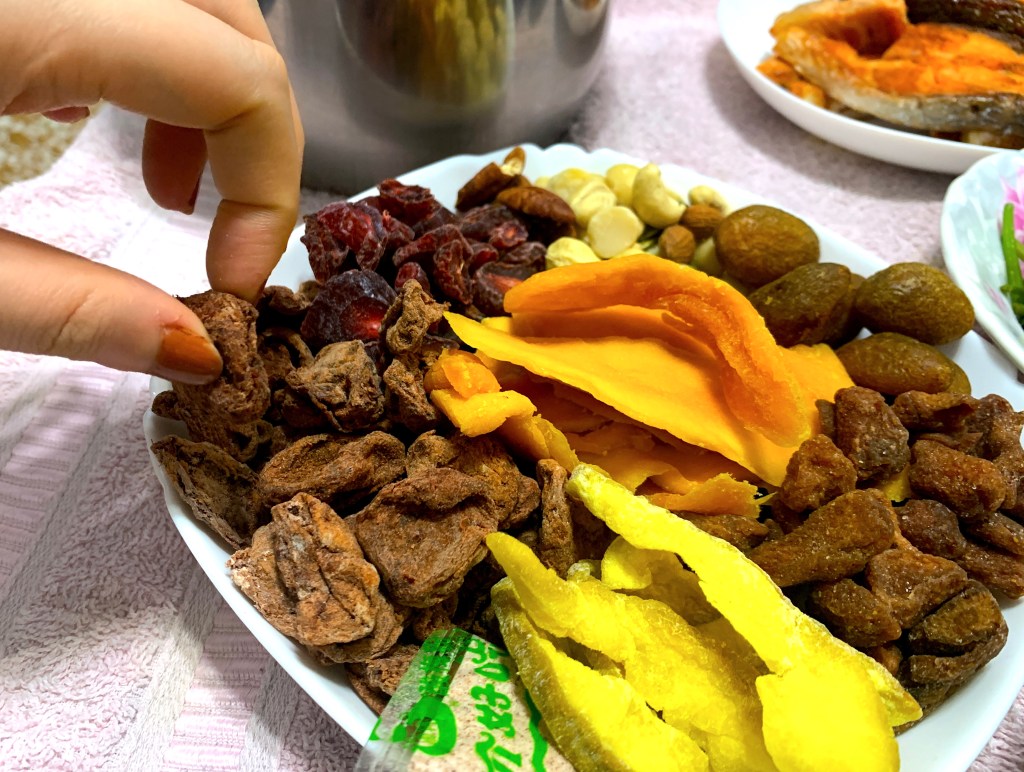 過年人團圓,看著桌上豐富的菜色,集結在盤子裡的各式果乾、堅果,就像是平時散步各處發展的家人們,在年節難得團聚在飯桌前吃飯、幸福話當年。將所有橙橙幸福果乾擺在一起所呈現的豐富鮮豔的顏色,真是讓人食指大動。
