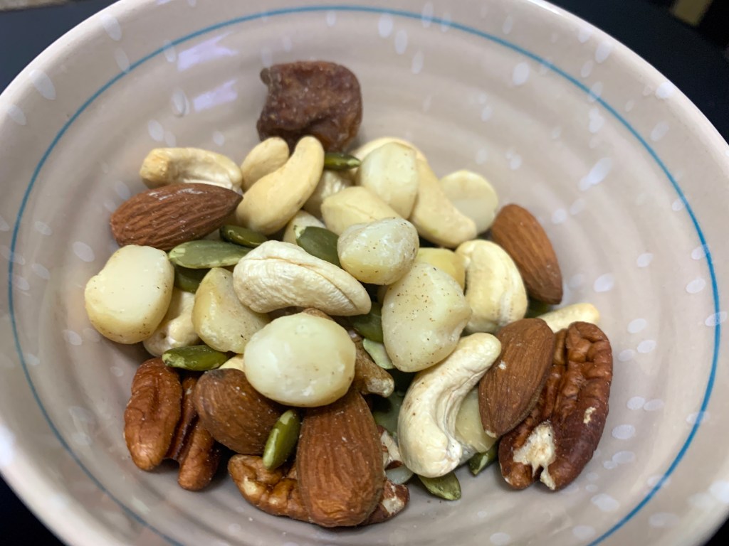 吃素的人也可以透過吃綜合堅果補充植物性蛋白質、膳食纖維、人體所需礦物質、不飽和式脂肪酸。我最喜歡杏仁,好怪每次去夜市聞到杏仁食品的味道都加速離開,竟然喜歡吃杏仁XD