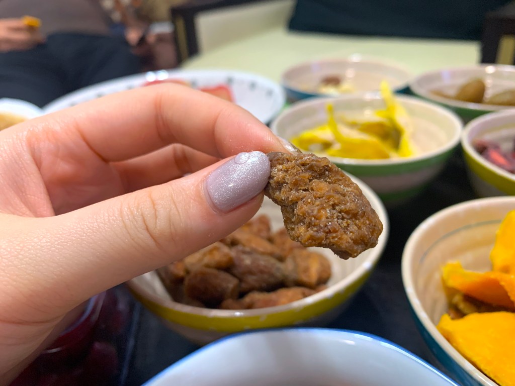 果肉青脆易咀嚼,口味同樣是稍微鹹的口感重一些,媽媽配著熱綠茶一起吃,很解膩~