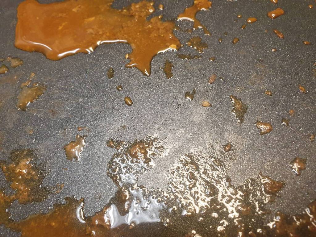 但是在剛使用完溫度還是頗高,等到放涼後烤盤上的肉汁都乾掉了,因為烤盤上有鐵氟龍不黏塗層,有不沾塗層的鍋具,通常都不建議用力刷洗,也因如此,才會習慣先將烤盤上的肉汁油脂先擦拭掉。