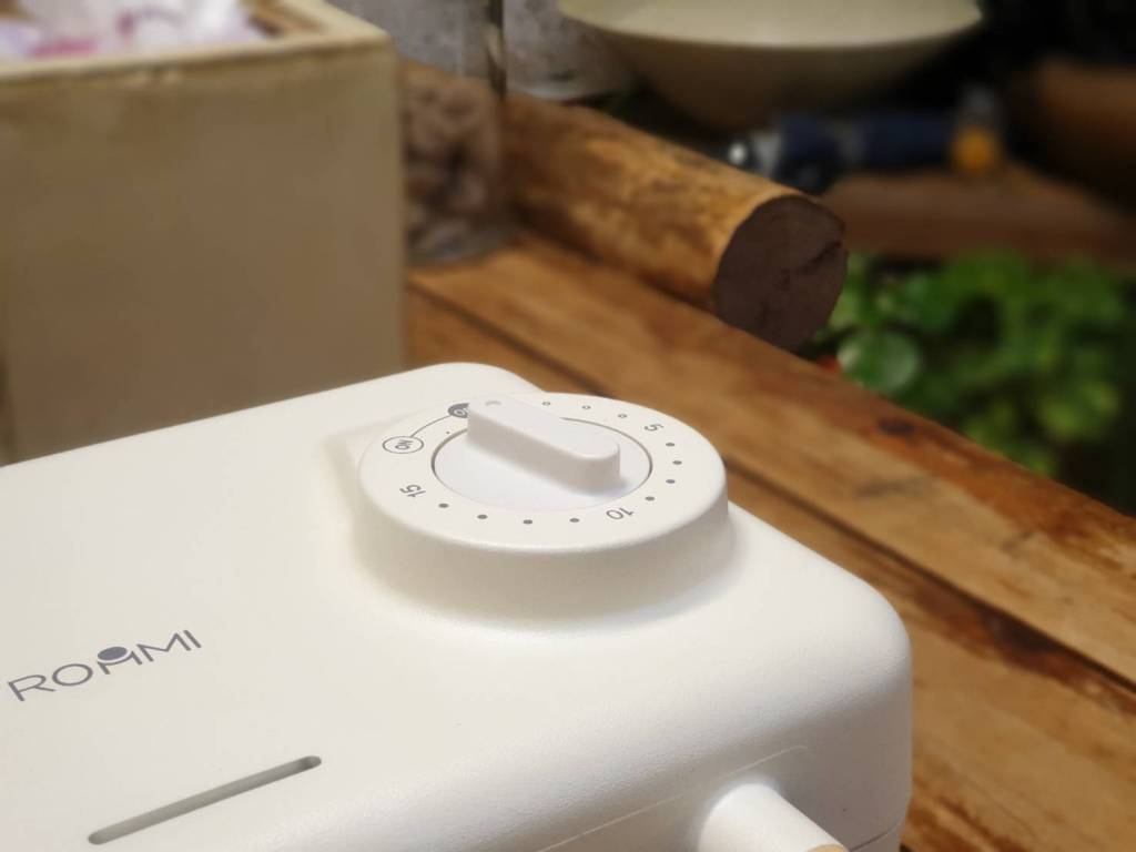 兩份麵包都做好後,就可以將上蓋蓋下,我將設定時間的轉鈕,轉到五分鐘的位置,讓Roommi煎烤熱壓三明治機do the work👍