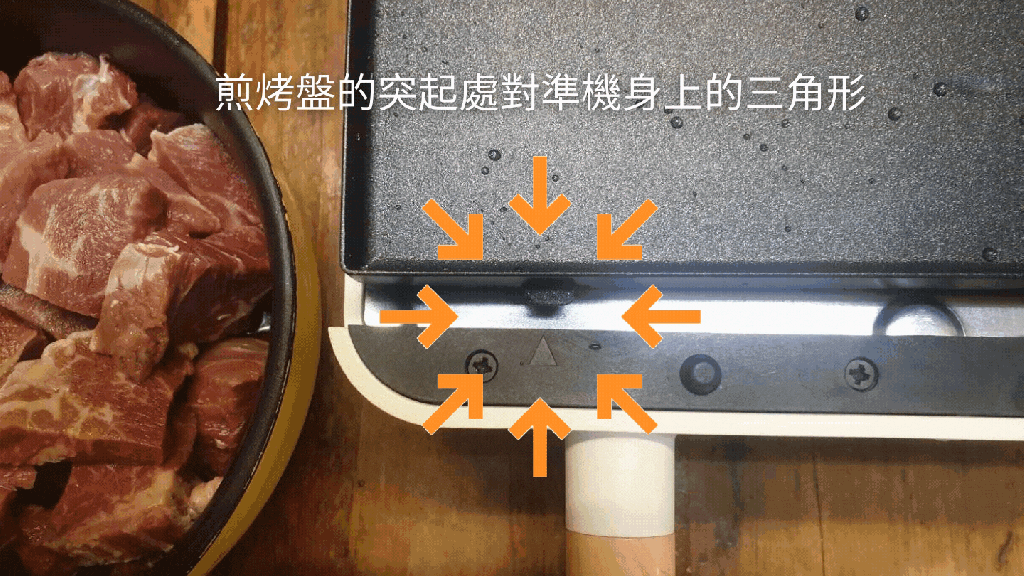 煎烤盤因為比較大,要讓他四邊都完整卡緊,所以鄙棄三明治烤盤,需要再用多一點力氣壓上去,以確保卡榫有卡緊唷!