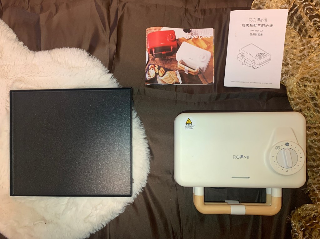 拆箱後,裡面附有三明治烤盤(出場就會裝在機器上)、煎烤盤、一本小食譜跟說明書。