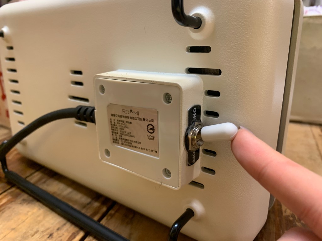 電線插上後,將機身背後的開關推到『ON』的地方,機器才算開啟,我覺得算是一個安全開關的概念,這邊沒有開的話,光是插上插頭也不會開始加熱唷!家裡有小朋友的話可以避免危險,當然還是不要讓小孩單獨操作最好的!