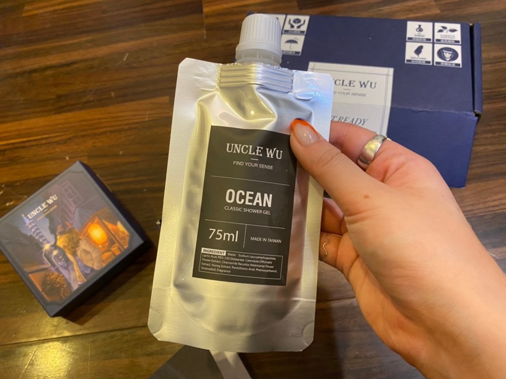 收到這款香水沐浴乳,我本來還有點擔心,因為我之前買過有名的小黑熊專櫃香水組合,裡面的香氛沐浴乳,是洗完以後全身像是泡過香水的感覺😬味道之濃的… Uncle Wu的這款倒不會,味道很清爽,很有衝浪boy的感覺,陽光男孩的感覺!