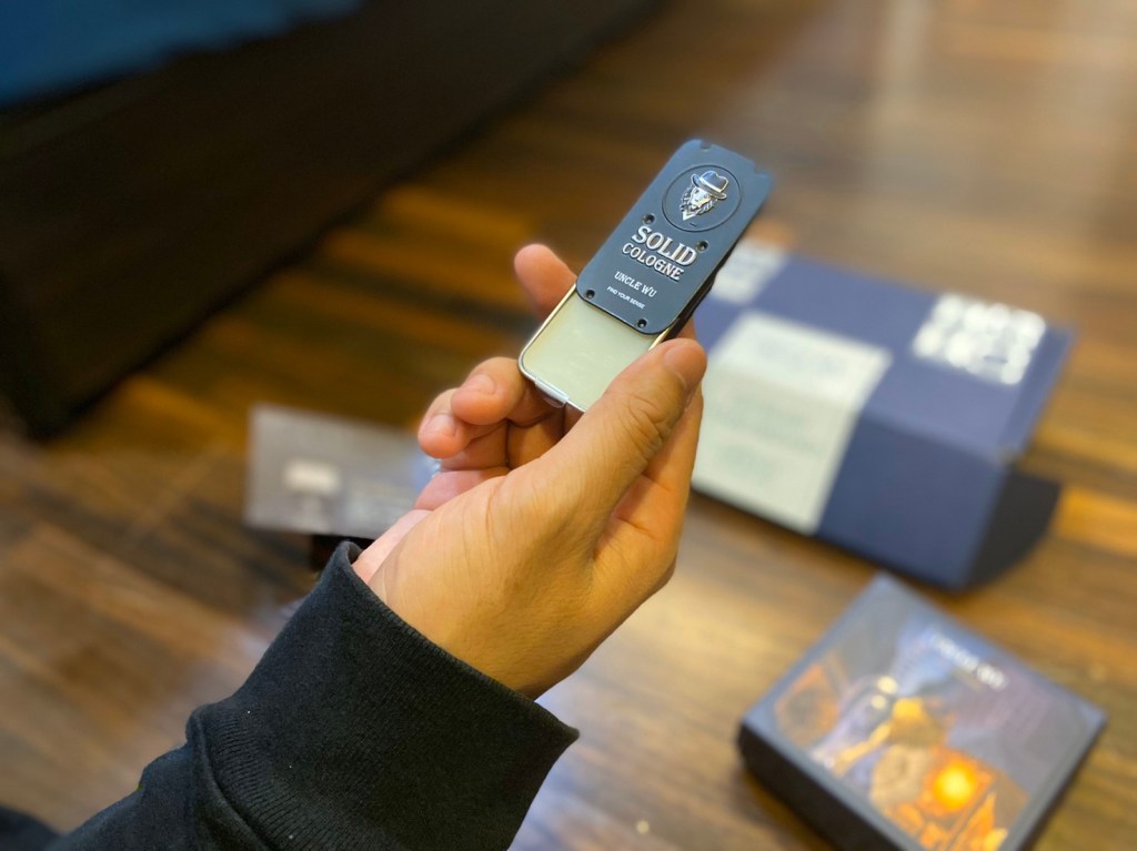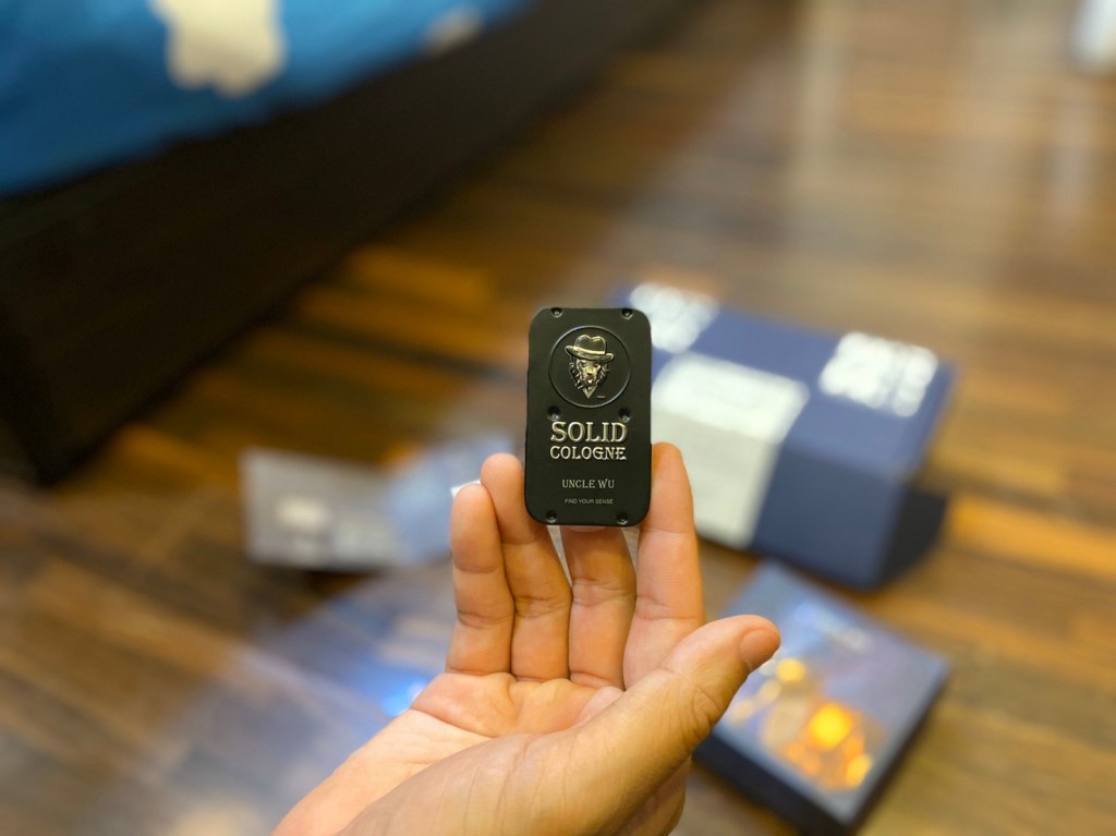 固體香水的小鐵盒是霧面消光黑的質感,很有氣質,盒蓋上有Uncle Wu的logo,是一個獅頭,隨然體積小,但拿起來也是頗有份量感,精緻的小禮物