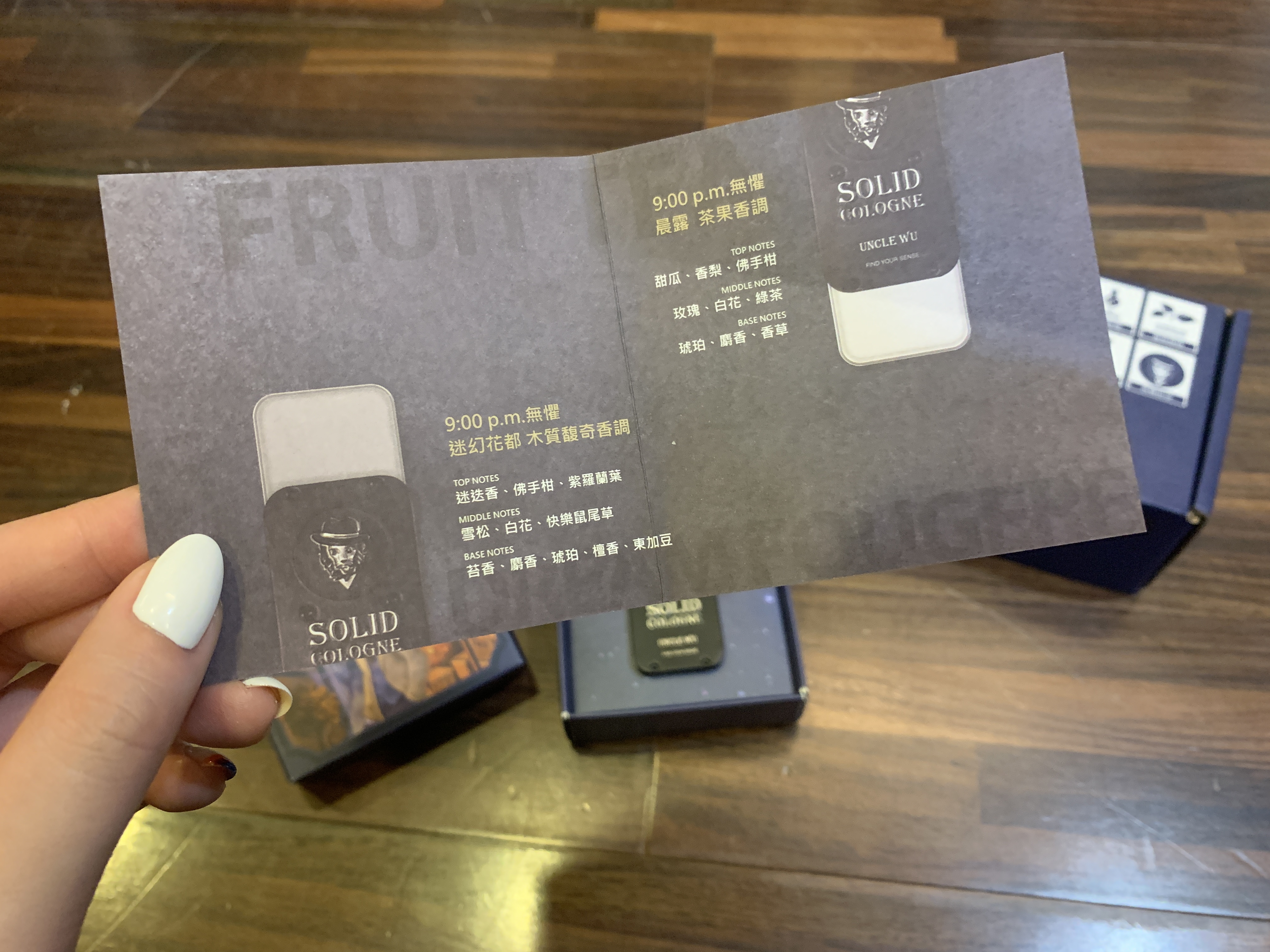 來自台灣的品牌主理人UncleWu跟大家一樣,出門喜歡身上帶點香味,他認為這是一種禮貌也是對身邊朋友的尊重。但香水不容易攜帶,整罐香水也不方便當眾拿出香水補香味!因此希望研發更多讓大家喜歡用,方便常常使用的香味。讓大家都可以找到自己喜愛、適合的味道!