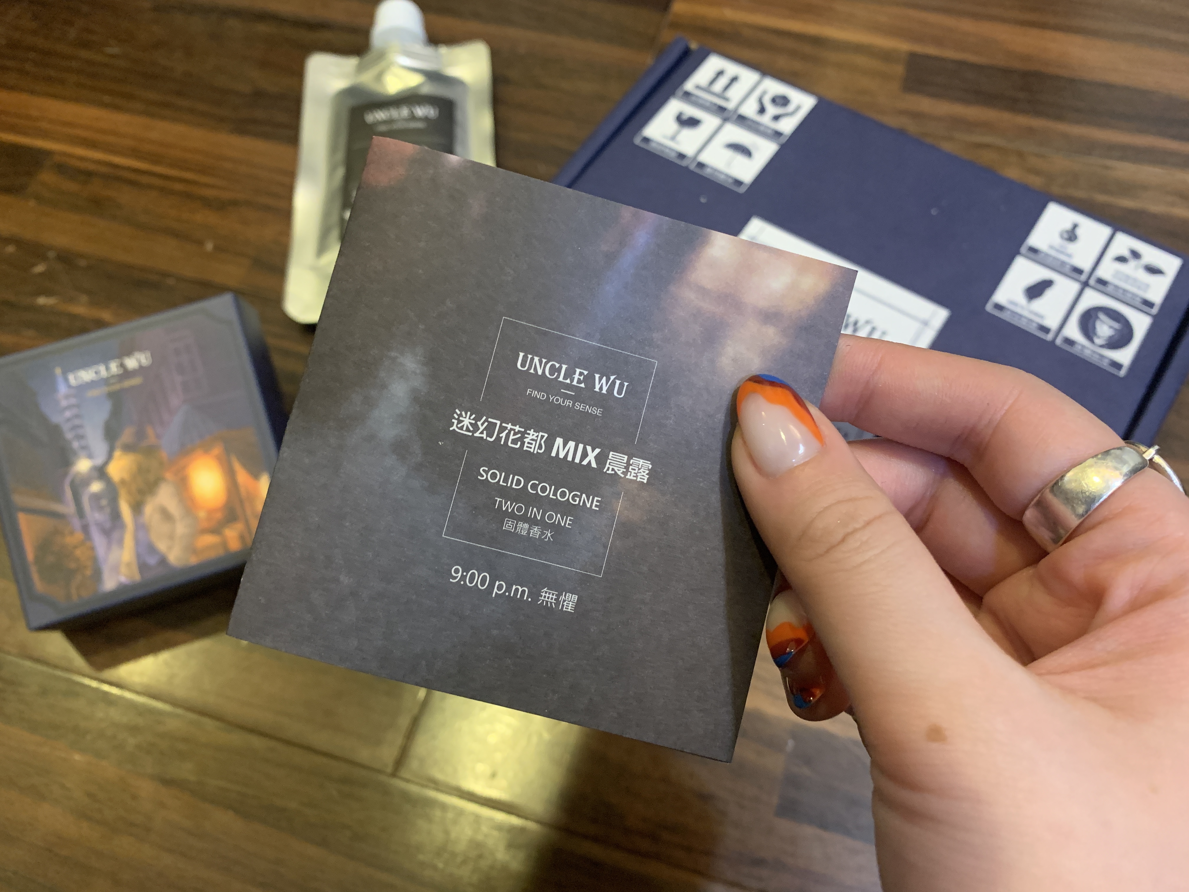 Uncle Wu的外盒是穩重的深藍色,盒子上寫著『FIND YOUR SENSE』,呼應Uncle Wu希望大家找到屬於自己味道~