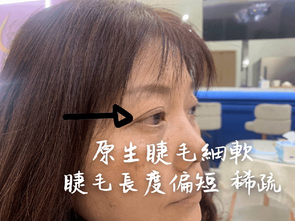 因為媽媽平常有在使用睫毛夾跟睫毛膏,美睫師說長久下來,都會影響睫毛的生長,不管是夾捲的過程,或是卸除睫毛膏都有可能造成睫毛脫落、越來越稀疏、細軟的狀況。