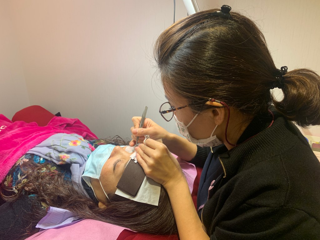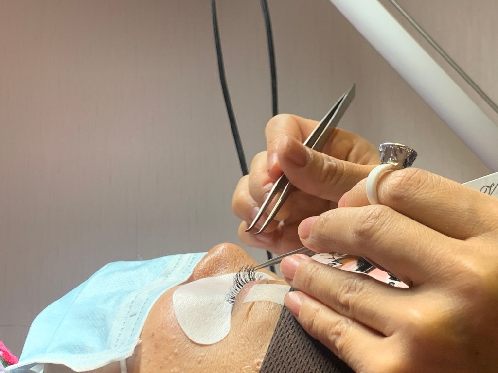 你看那一根YY毛有多小,真是辛苦美睫師了~我在旁邊看都覺得眼睛好痠~
