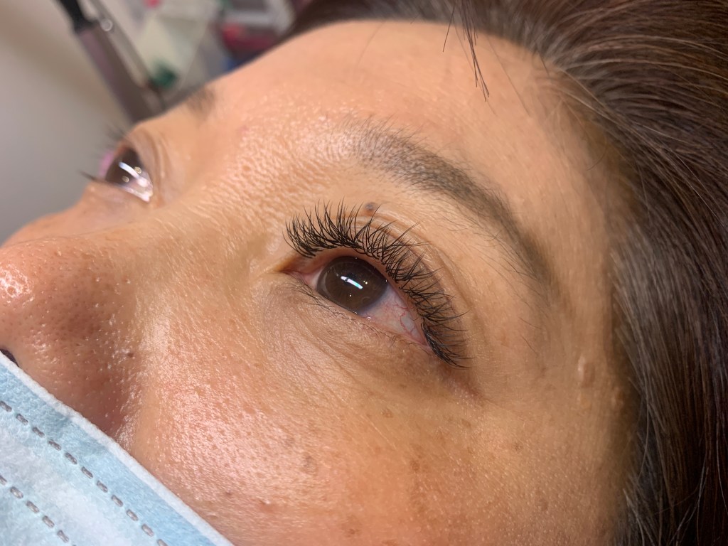很快兩邊都做好囉!睫毛的作業時間超短!一個小時就完成,也完全沒有任何恢復時間,約會前、參加重要活動、婚禮前來做完全沒問題XD