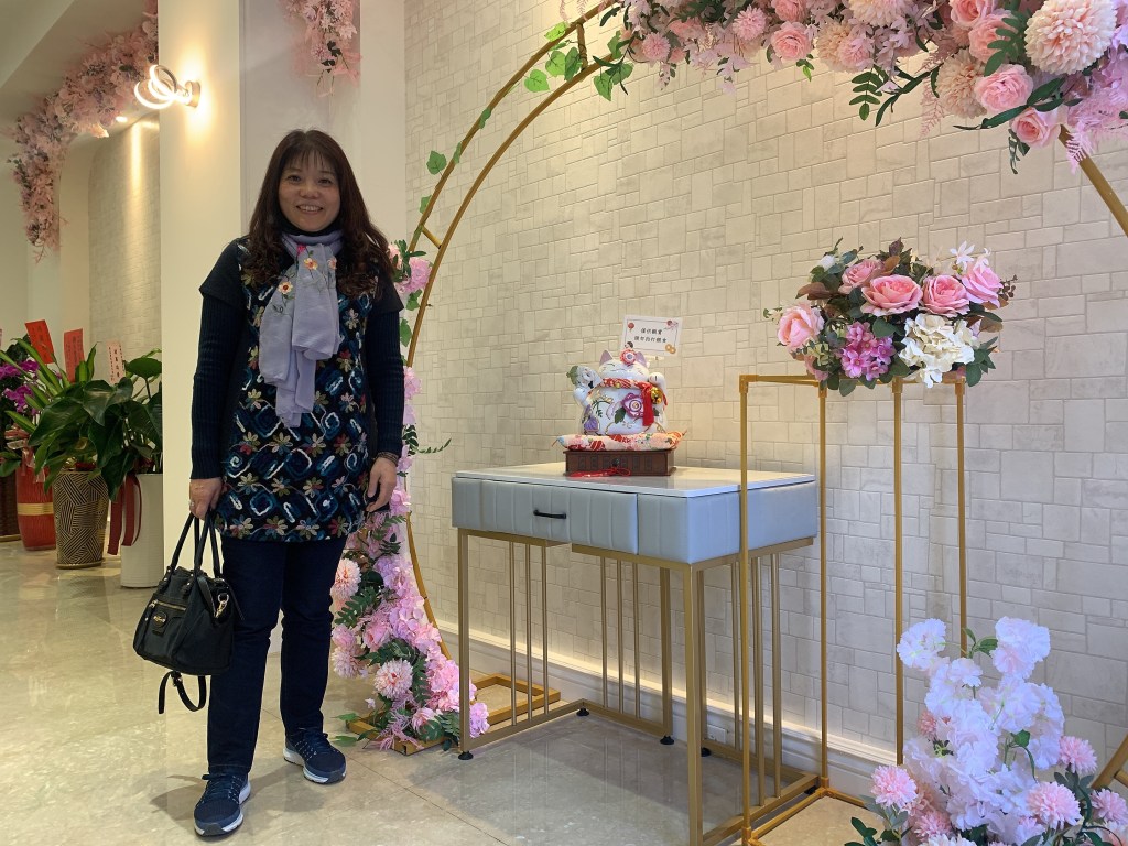 『媽媽~笑一個!』完成後在入口處的花拱門拍張照,哇 接完睫毛笑得跟花一樣漂亮欸~整個人都變得更有神更自信了,讓媽媽變漂亮好滿足~