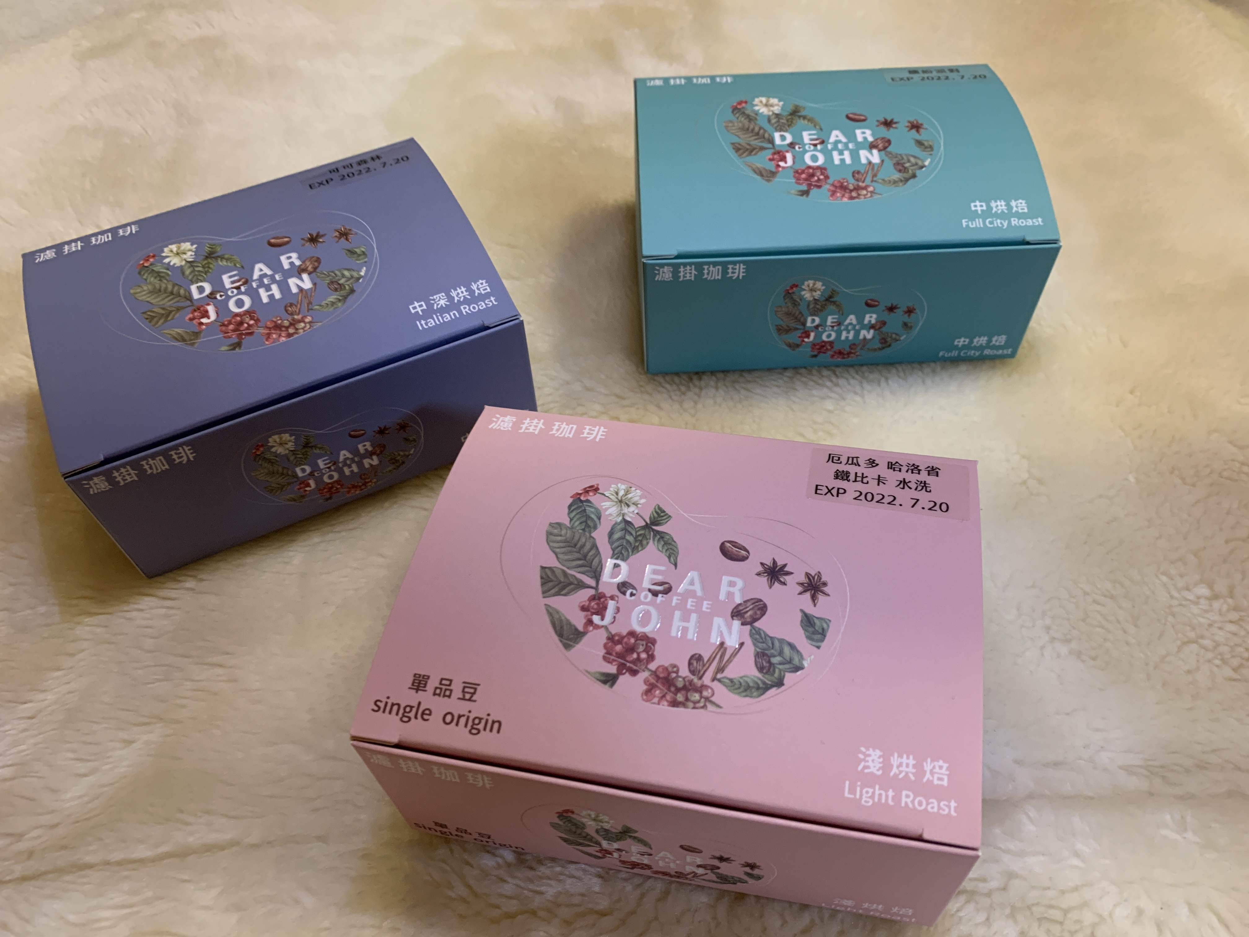 『濾掛式咖啡宅配』【 Dear John coffee 親愛的約翰珈琲】淺焙、中焙、深焙濾掛咖啡三種層次、香味一次滿足