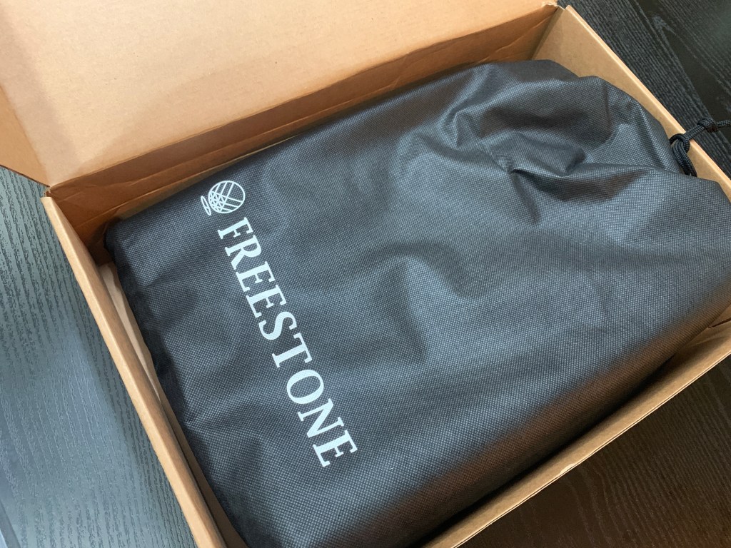 包裝上有精美的特製紙盒,briefpack雙面變形包外還有防塵袋包裹,也方便可以完整收納,防塵袋也印有Freestone品牌LOGO