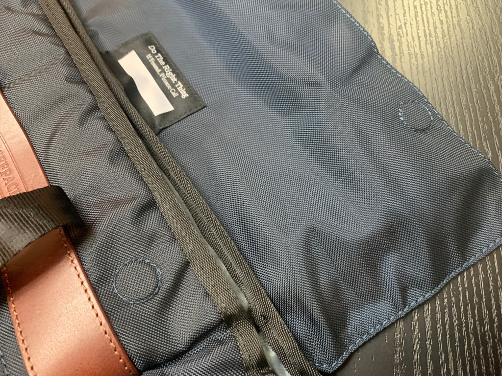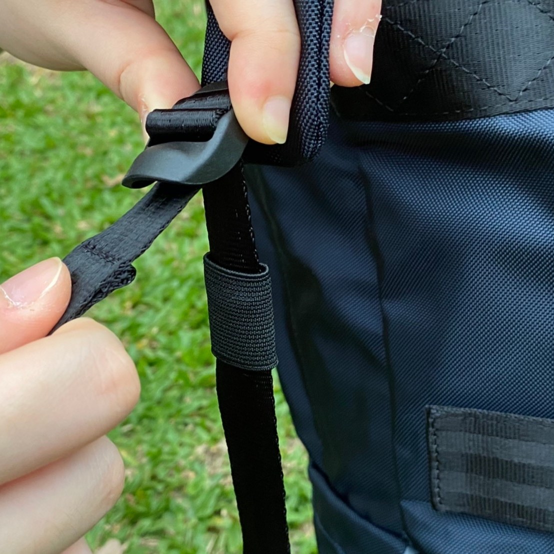 後背帶可視狀況調整長短,背帶上及後背包前方都有小黑布帶,我猜這是可以掛上掛勾掉一些簡單的小物,比如露營時的鋼杯啊等等,Airpods也可以掛耶~