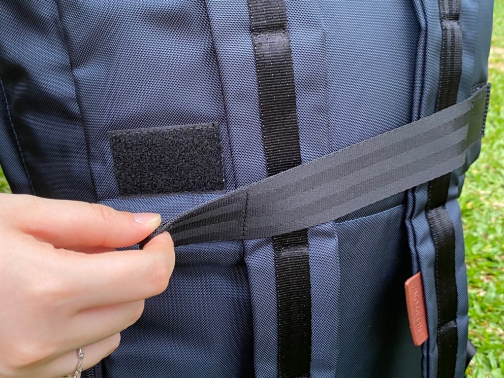 魔鬼氈收束帶拉開,後背包背帶出現嚕!