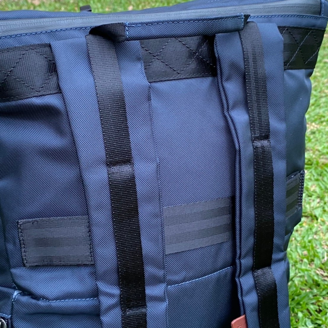 而且這麼大容量的包包裝滿時,理當很重才對,不過後背包背帶設計挺好,背在肩膀上不會負重感太強,不會壓迫不舒服,感覺是很舒服的平均分攤在背上跟肩膀上,這點很加分!露營回程那天,從淡水一路坐捷運到南港,都不會太過不舒服,會重是正常,但不會過重導致肩膀痛!很優質~