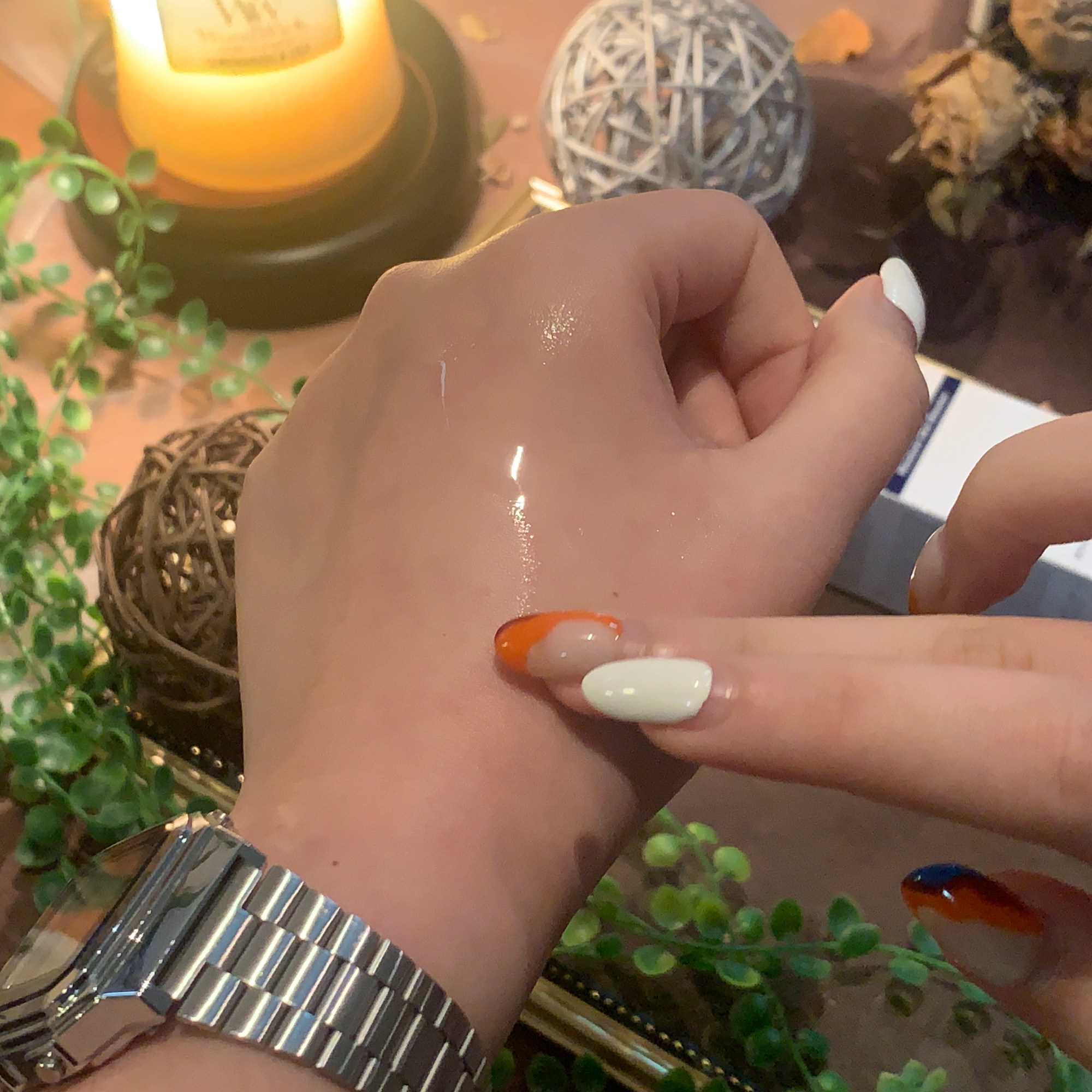 流動性較一般化妝水低,不過滋潤的質地不代表會悶,使用完依舊清爽,且皮膚摸起來很水嫩,且會呈現自然光澤
