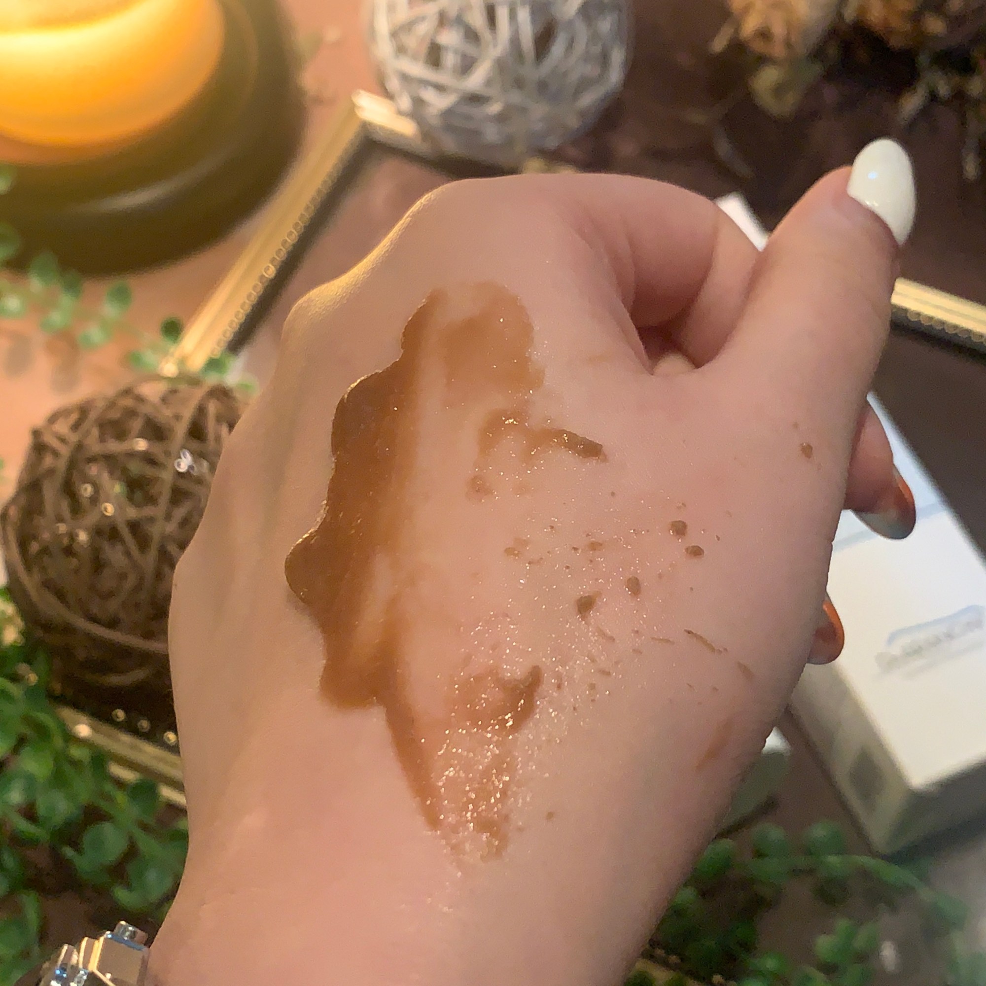黑糖柔嫩去角質霜擠出是黑糖色,所以我心揪了一下,深怕聞到類似之前經驗的甜膩味道,不過他的味道很清新,有點像是茶樹精油的味道,清爽舒壓