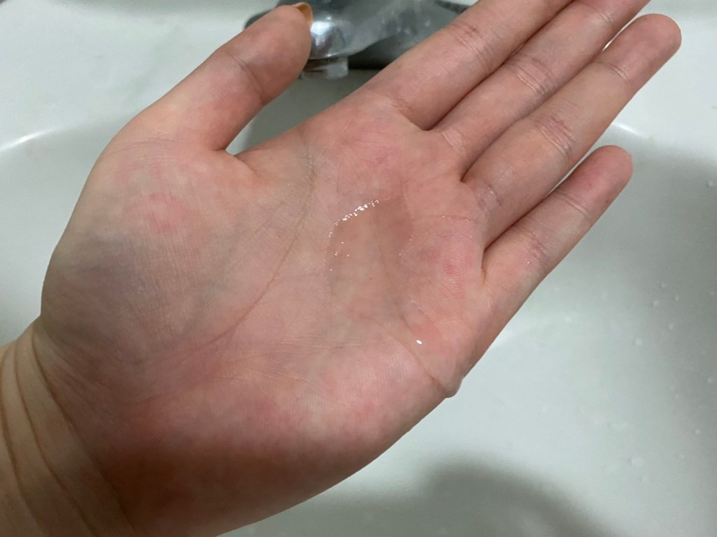 私密潔淨保養凝露呈現完全透明狀,而且流動性極高,跟我過去用過的私密處清潔產品很不同,一次使用按壓1次即可,按壓在手掌後加水稀釋搓揉,再將細緻泡沫搓洗私密處,再以清水洗淨即可
