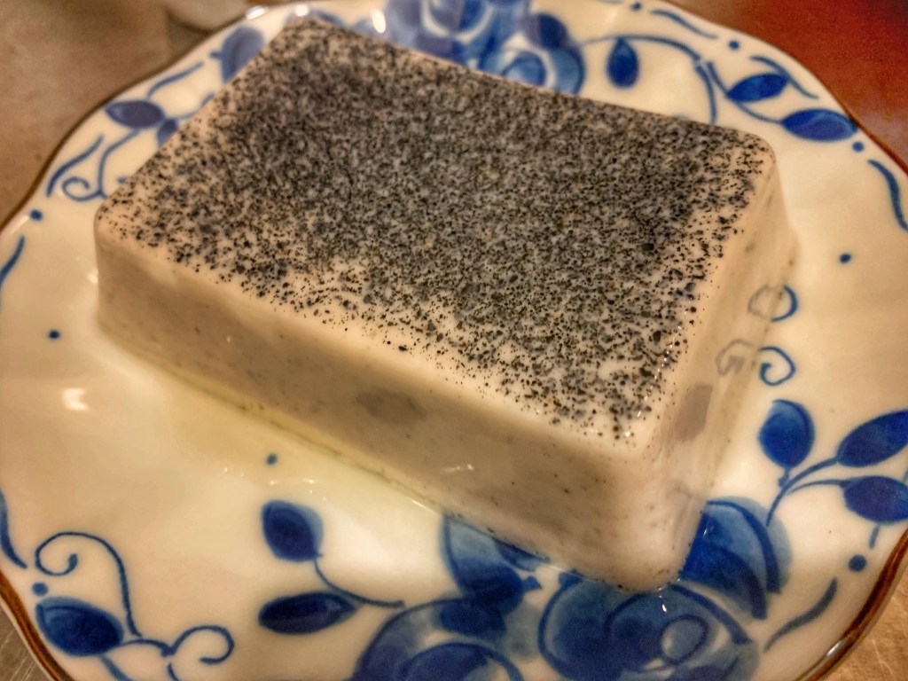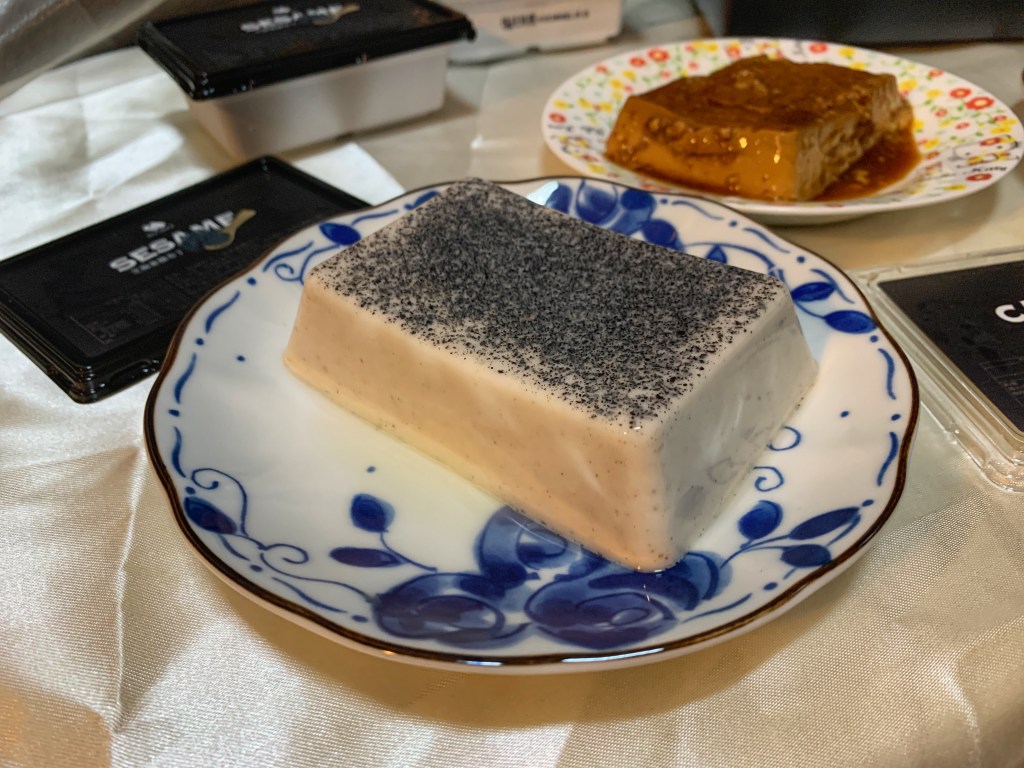 布丁上鋪了一層芝麻,倒在盤子上讓人食指大動,芝麻清香,也沒有多餘醬汁糖水,