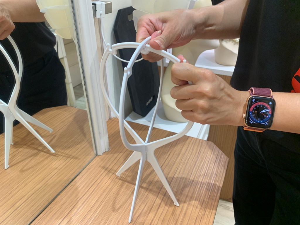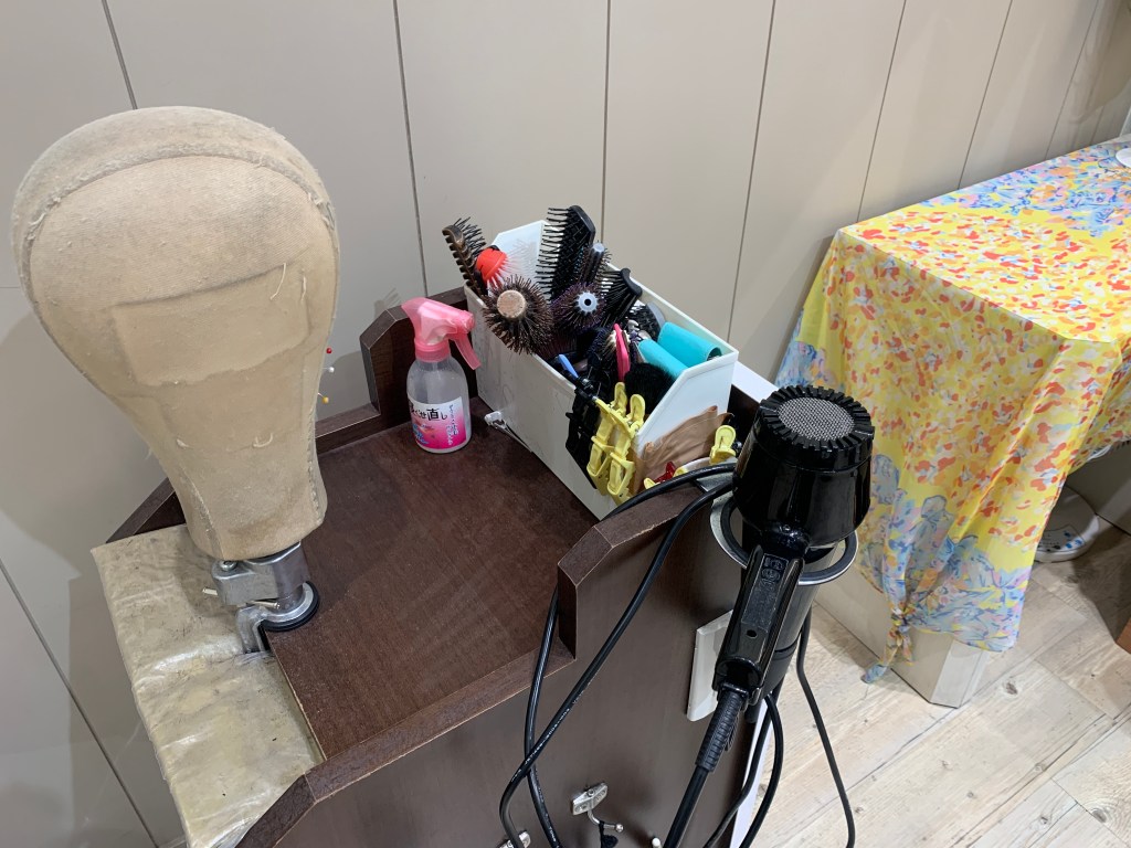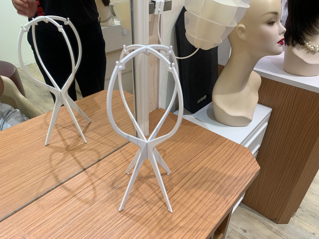 購買假髮愛德蘭絲會提供支架,支架頂端鋪上乾毛巾止滑,