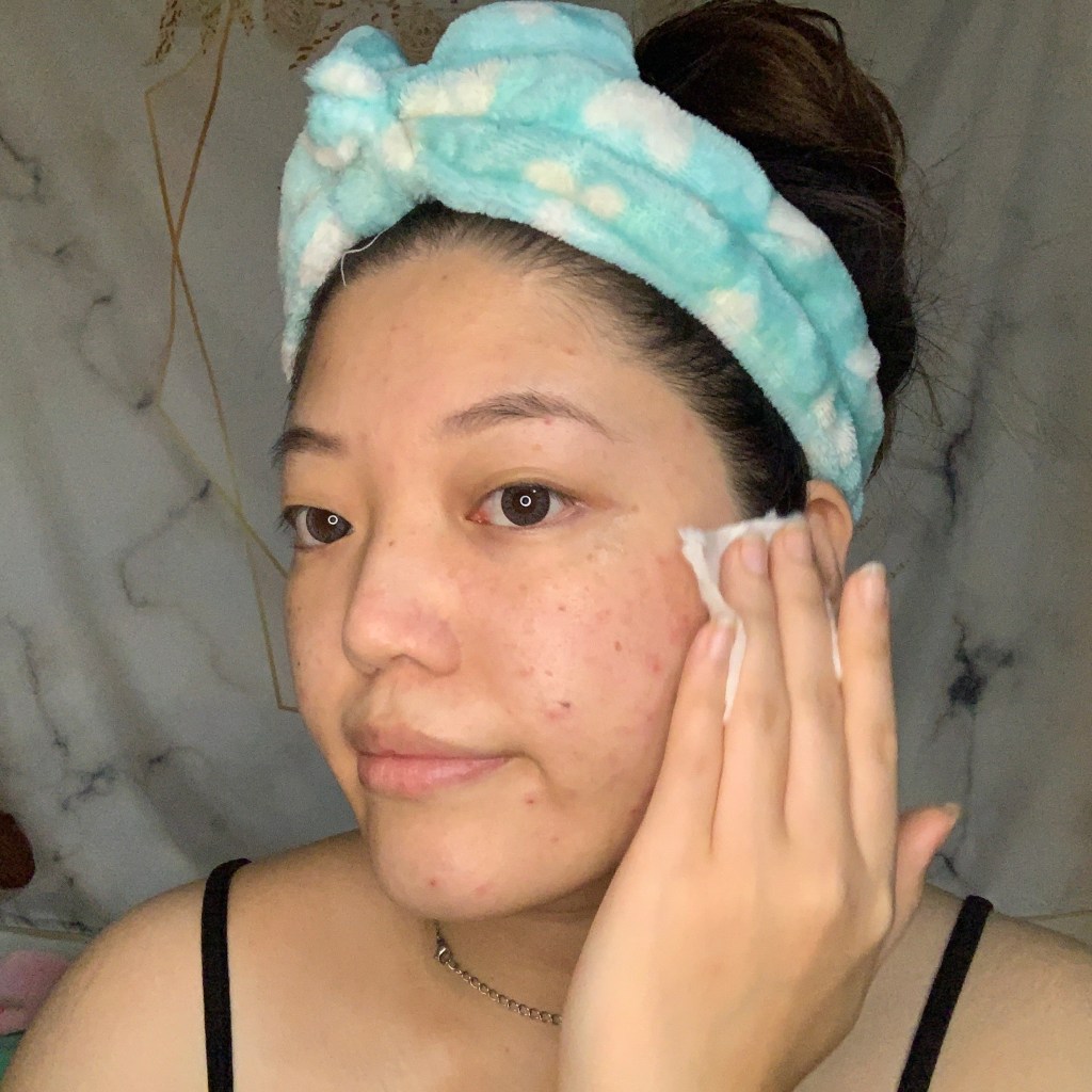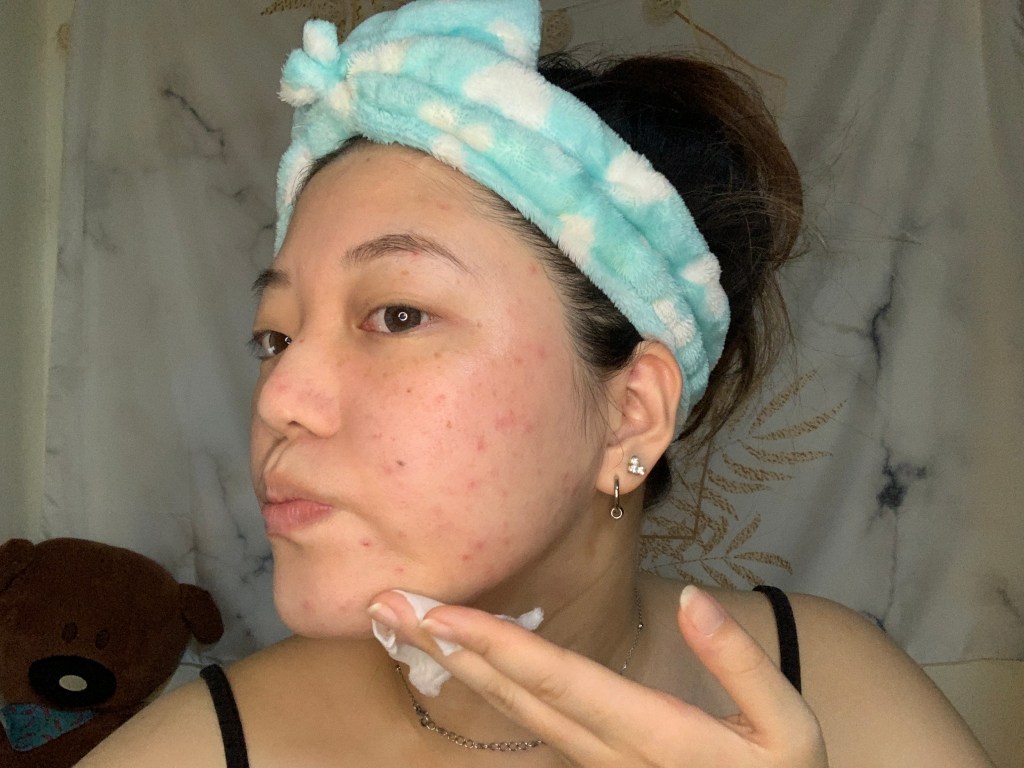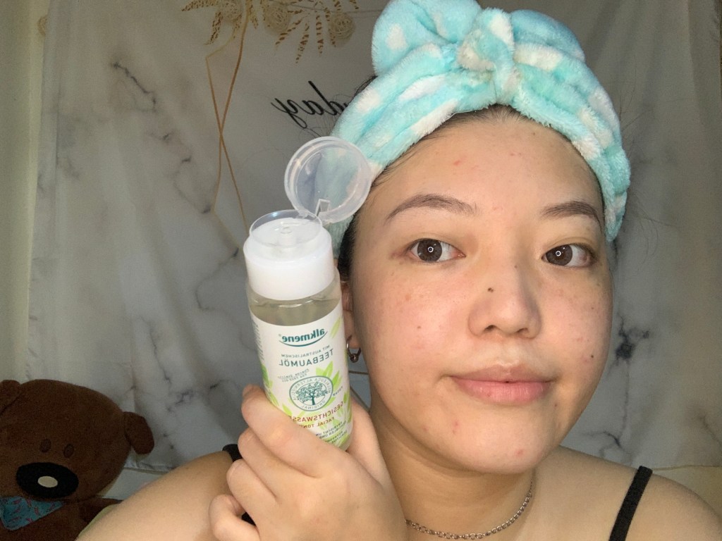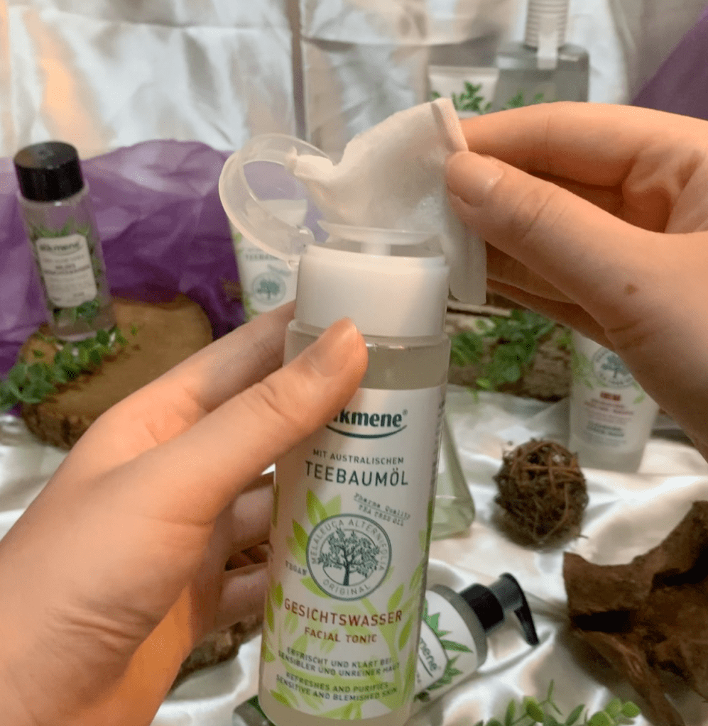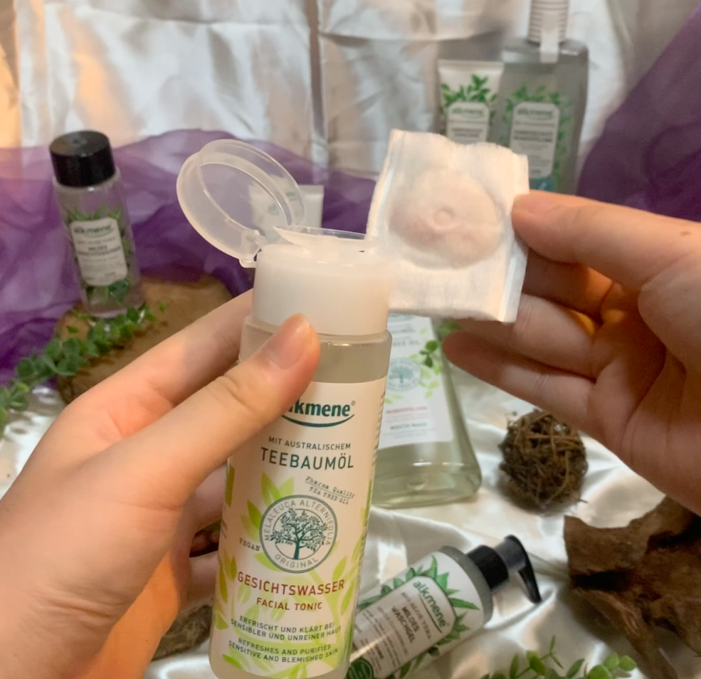 接下來我會擦拭茶樹精油淨膚水跟蘆薈保濕化妝水