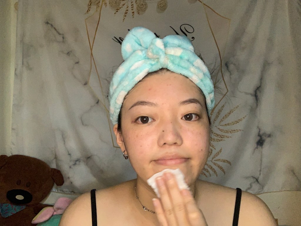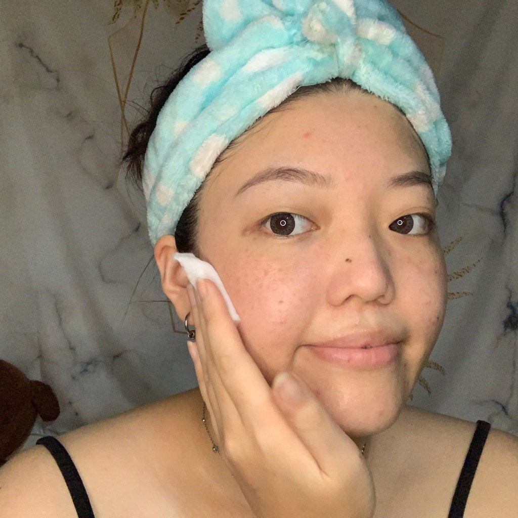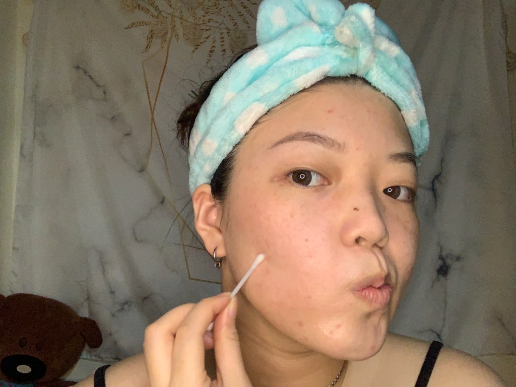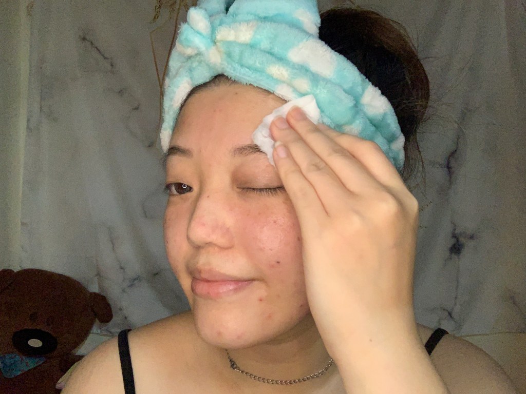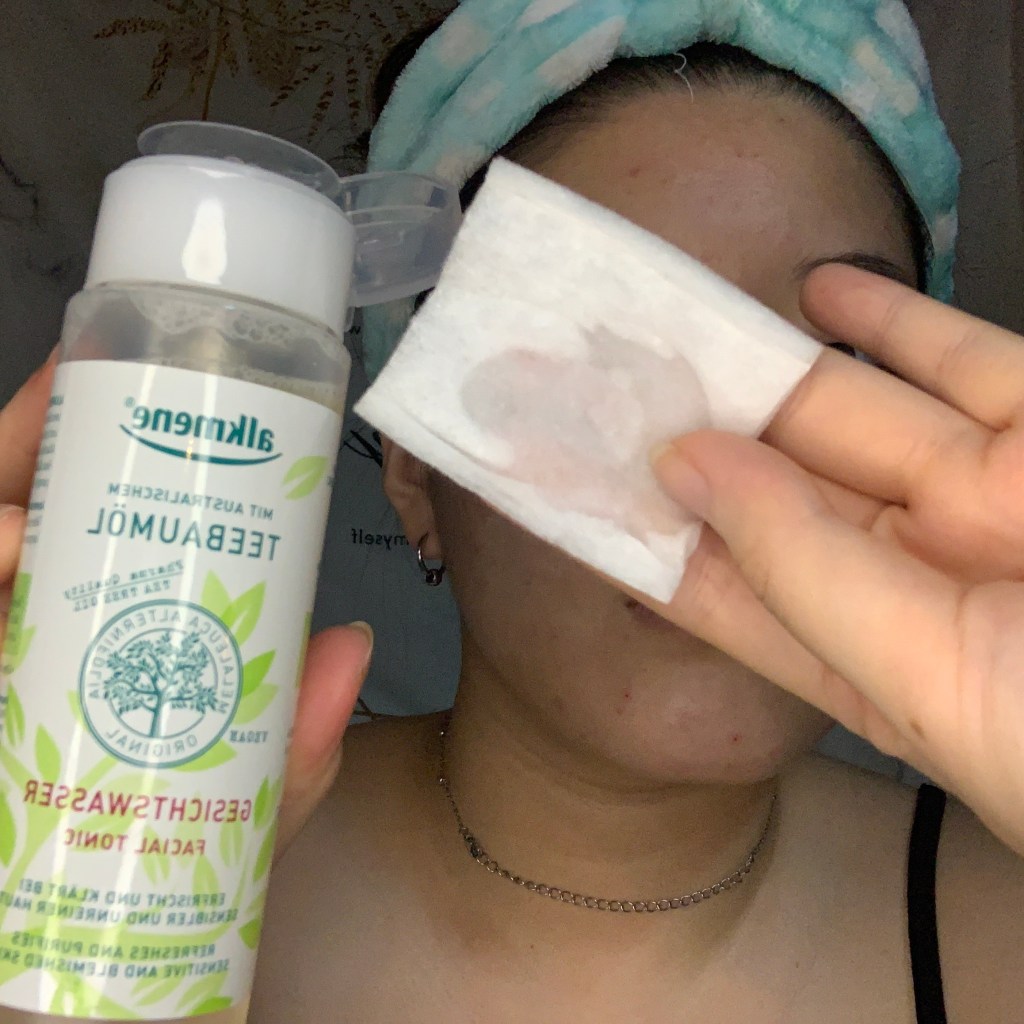 接下來我會擦拭茶樹精油淨膚水跟蘆薈保濕化妝水