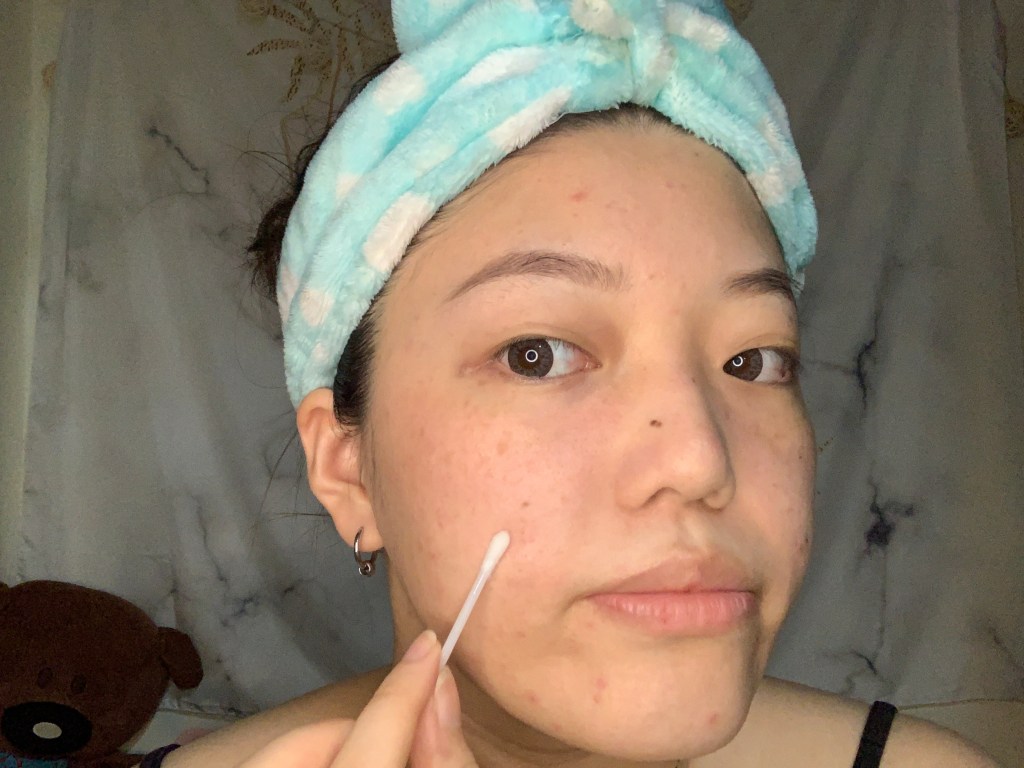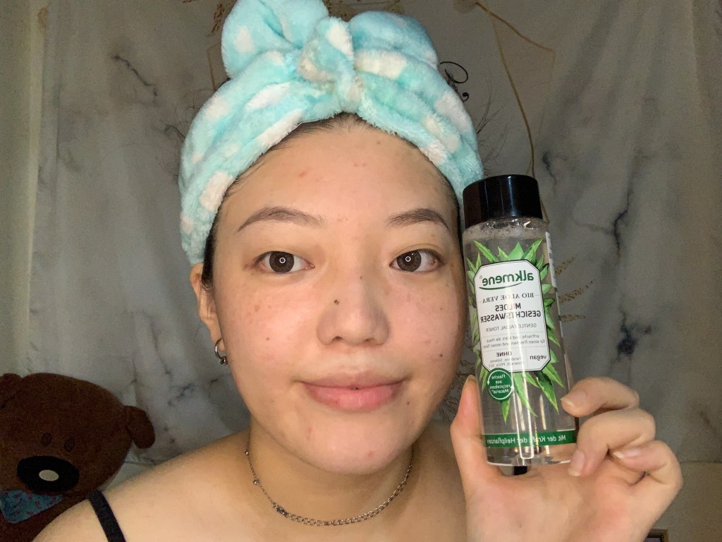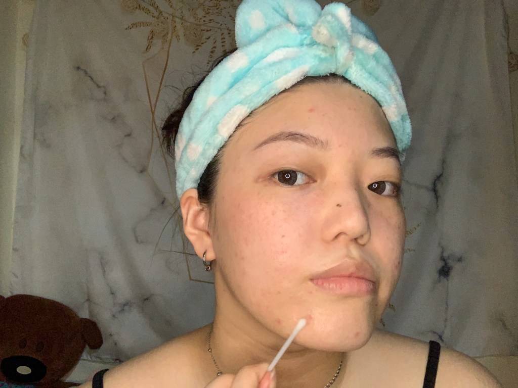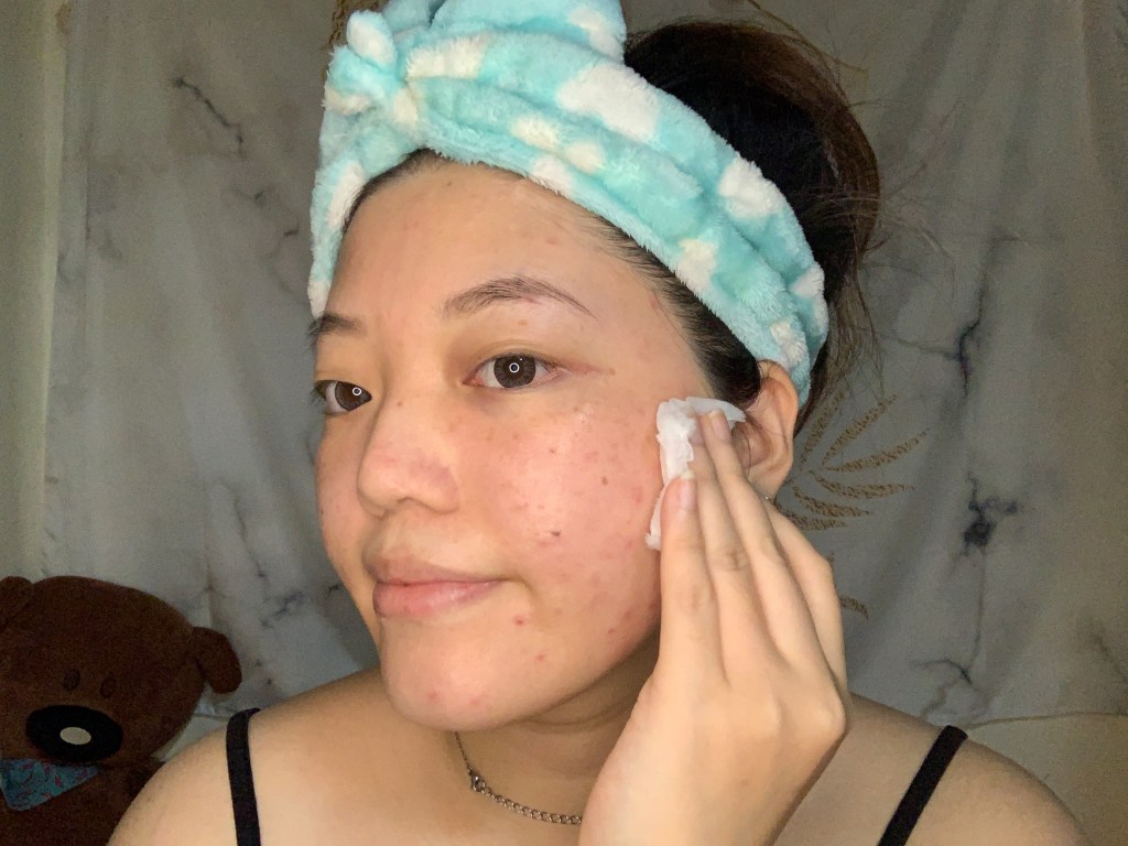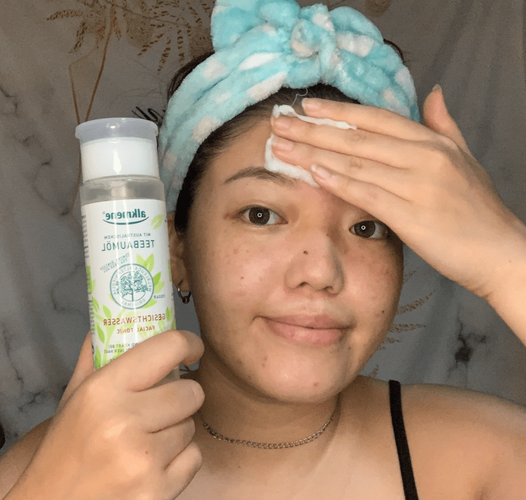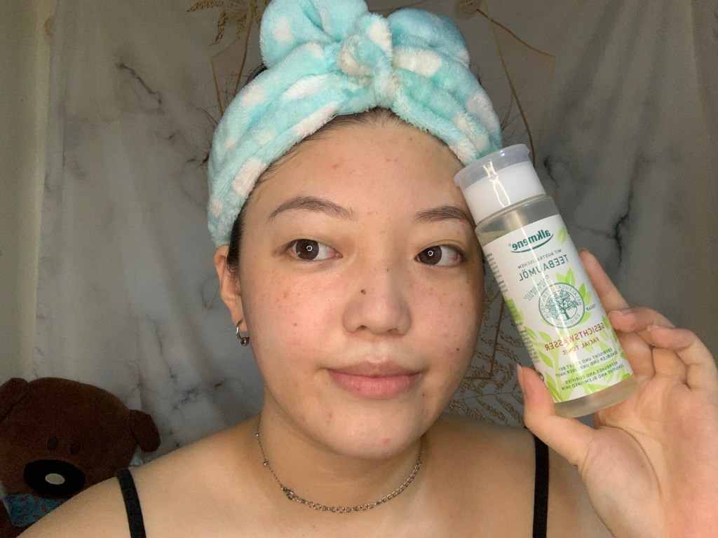 接下來我會擦拭茶樹精油淨膚水跟蘆薈保濕化妝水