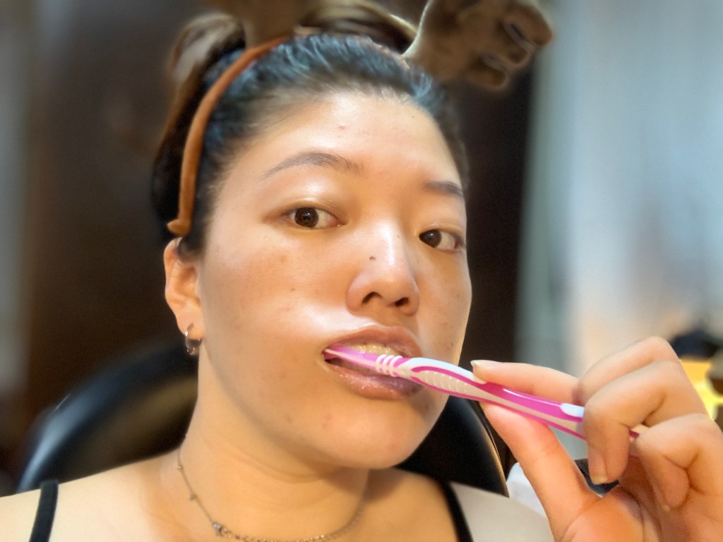 回來牙刷上馬上變得空空如也,牙膏都滑掉了