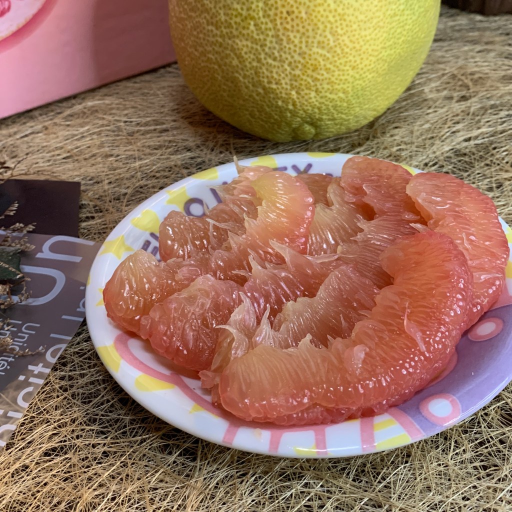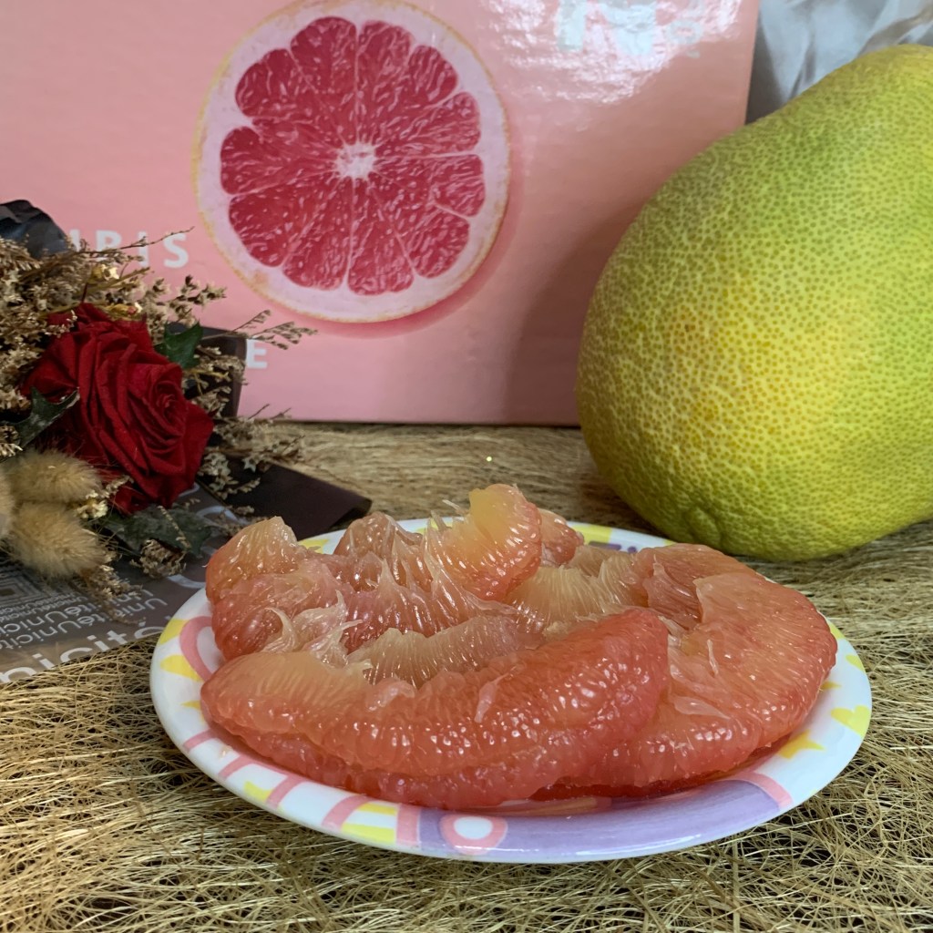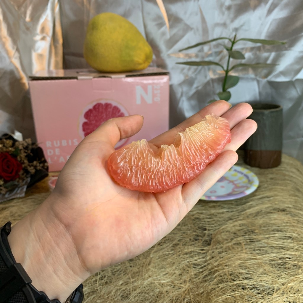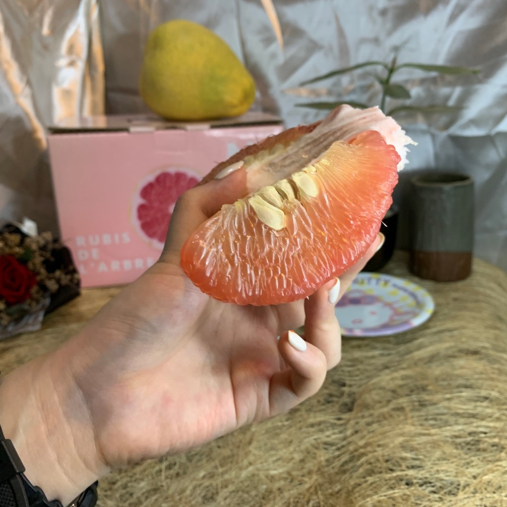 紅文旦口感比白文旦軟嫩許多!硬要說的話白文旦比較偏韌性、脆感;紅文旦就是嫩且多汁,如果白文旦的多汁程度是8分,那紅文旦就是12分!味道是甜中帶微微微微的酸,尾韻還有一點點的苦,不過因為紅文旦的甜度,這個酸感跟微苦反而增加風味的層次,就像是高級巧克力尾韻有苦味一樣,更讓人回味無窮,庄稼郎紅文旦的味道讓我想到葡萄柚的風味,不過比葡萄柚更好吃!🤣